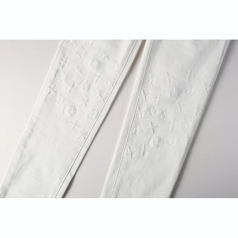 Pantaloni jeans strappati con bottoni e bottoni stampati skinny elasticizzati invecchiati da uomo bianchi americani High Street