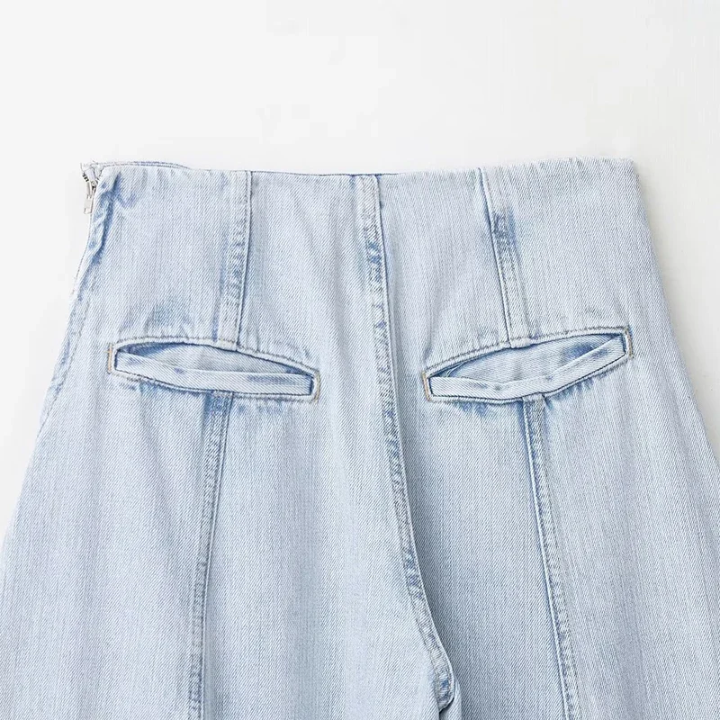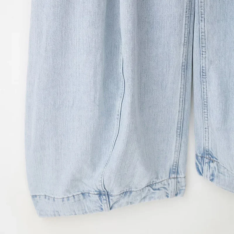 I pantaloni larghi a gamba larga di colore azzurro raggiungono un perfetto equilibrio tra comfort e resistenza! Il tessuto è un misto cotone lavato, che sembra un vecchio lenzuolo che è stato impastato. È morbido ma ha un drappeggio, a differenza dei normali pantaloni a gamba larga che non si attaccano alle gambe. Quando si cammina, i pantaloni oscillano dolcemente, donando una sensazione aggraziata; Il tessuto azzurro è stato sottoposto ad un trattamento di fissaggio del colore ed è stato lavato cinque o sei volte. Il colore è ancora brillante senza sbiancamento e l’acqua non ha tinto di blu, quindi non è necessario preoccuparsi di problemi di tintura.