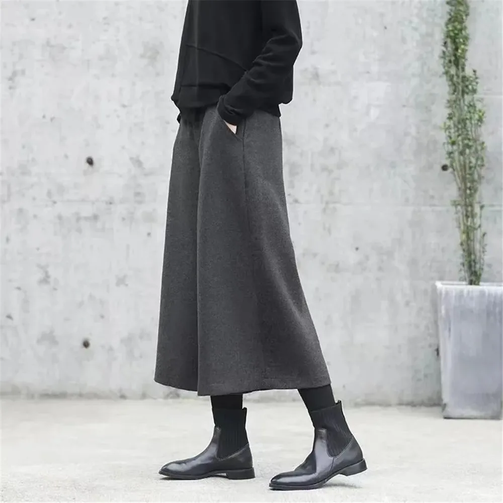 Pantaloni larghi in legno con gonne a gamba larga Pantaloni casual da donna Pantaloni dritti autunnali invernali Pantaloni coreani elastici a vita alta con gamba grassa