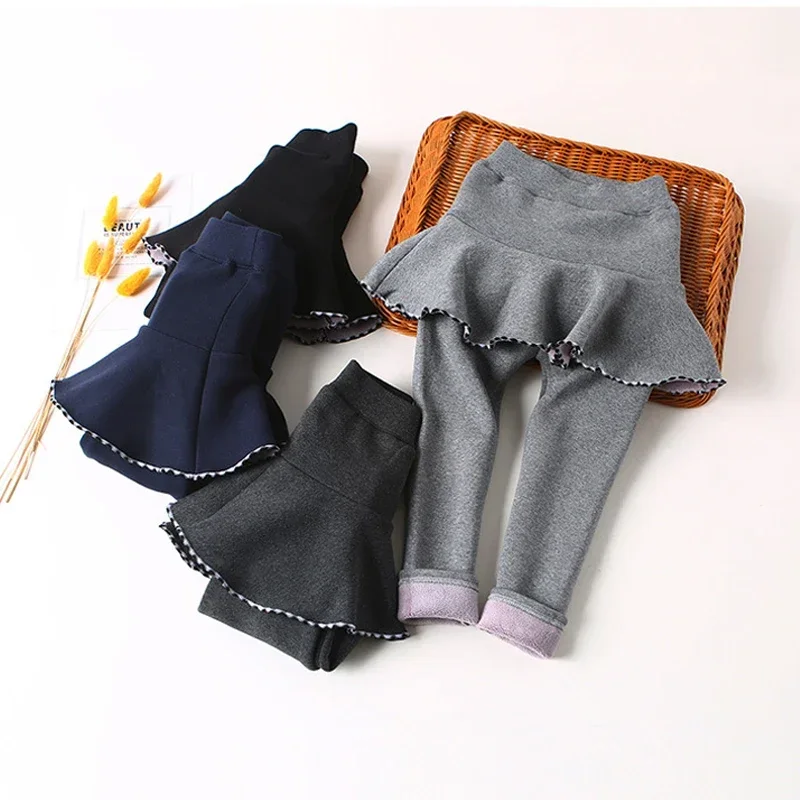 Pantaloni leggings invernali per ragazze Pantaloni per bambini Legging in pile per ragazze Spessi caldi Falsi due pezzi Culotte Pantaloni gonna per bambini