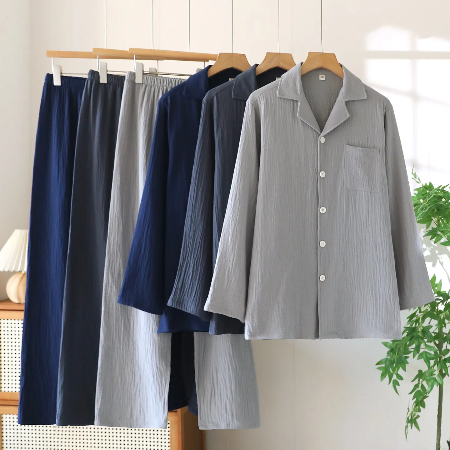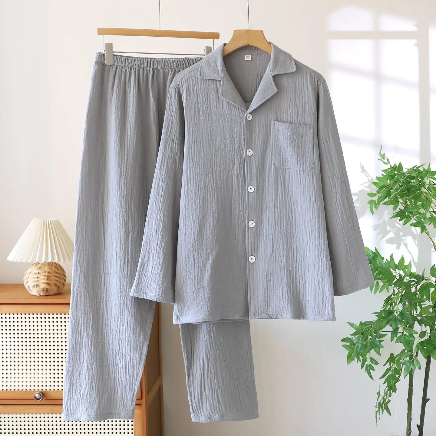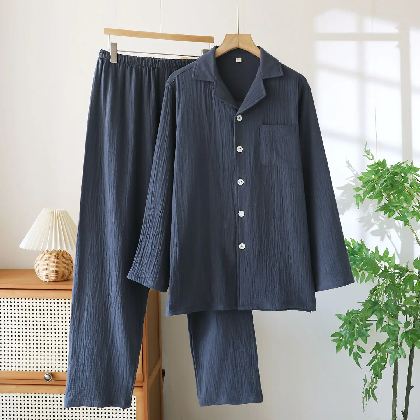Pantaloni lunghi a maniche lunghe sottili primaverili e autunnali Set pigiama da 2 pezzi Set di vestiti per la casa in cotone taglie forti da uomo 1Pantaloni lunghi a maniche lunghe sottili primaverili e autunnali Set pigiama da 2 pezzi Set di vestiti per la casa in cotone taglie forti da uomo