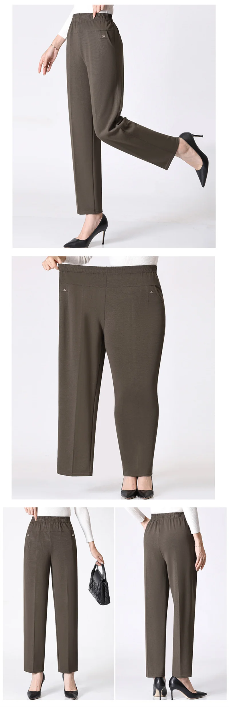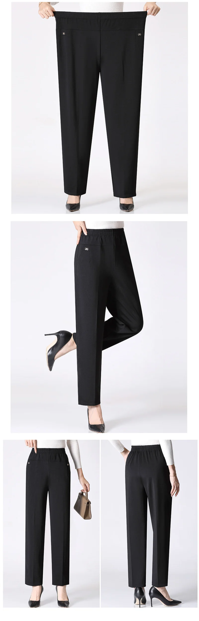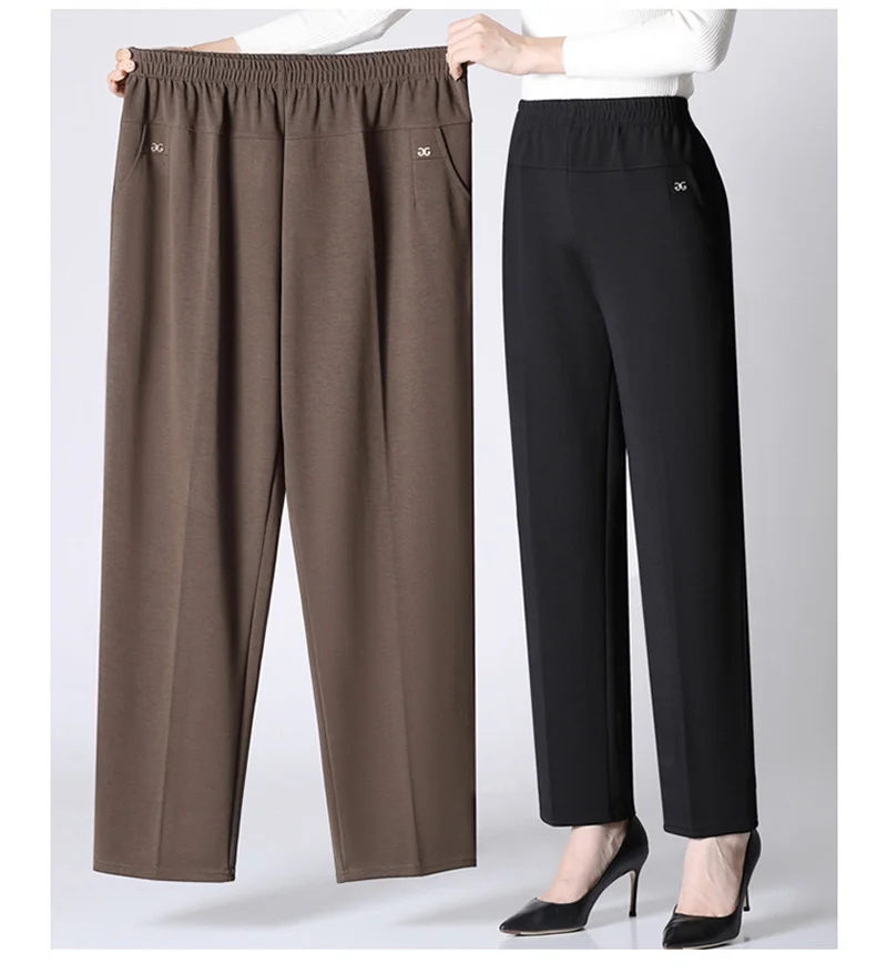 Pantaloni lunghi da donna primavera autunno 2025New Pantaloni elastici a vita alta casual per mamma media e vecchia Pantaloni dritti caldi in peluche invernale 8XL