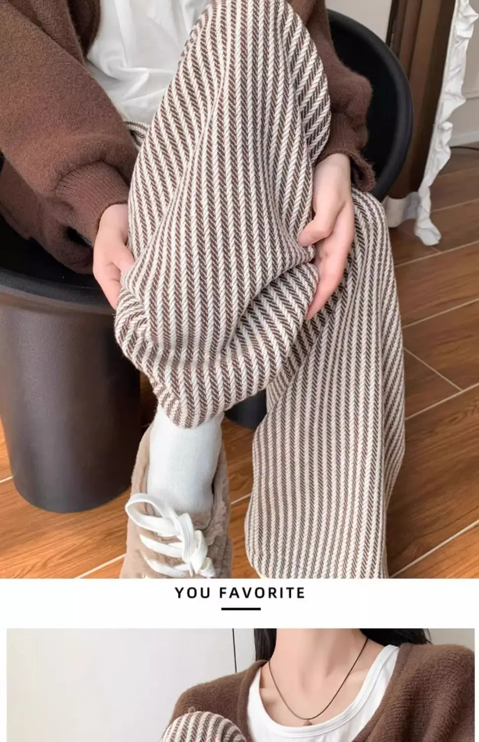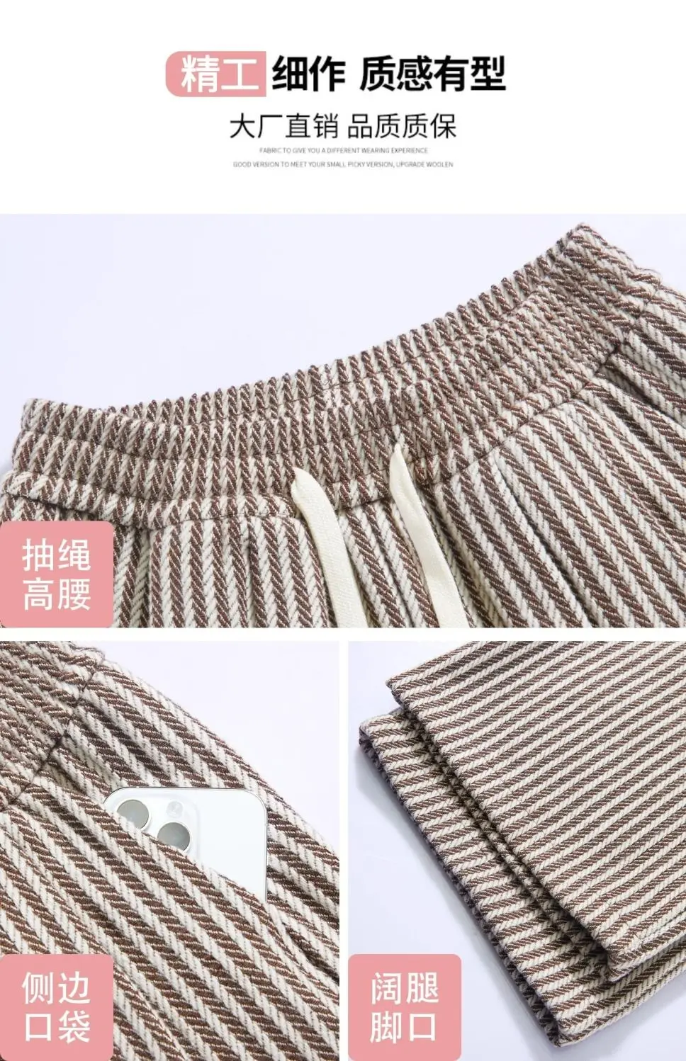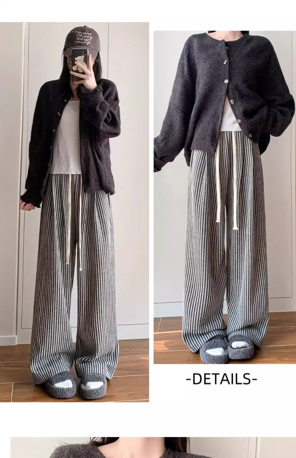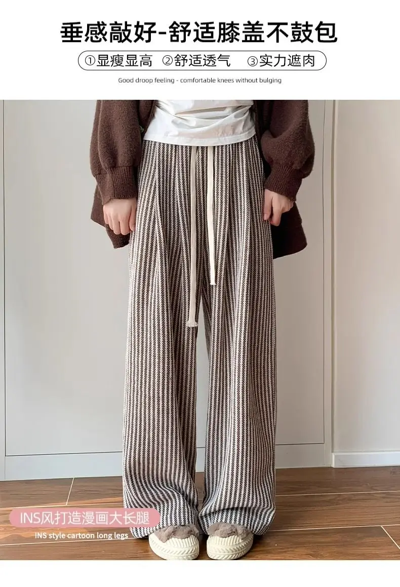 Pantaloni primavera autunno donna retrò a righe lavorati a maglia casual quotidiano semplici pantaloni a gamba larga a vita alta temperamento elegante femminile tutto-fiammifero