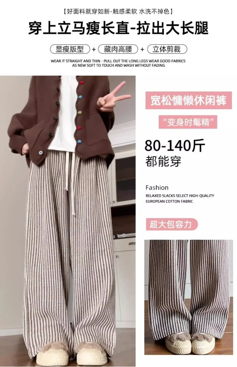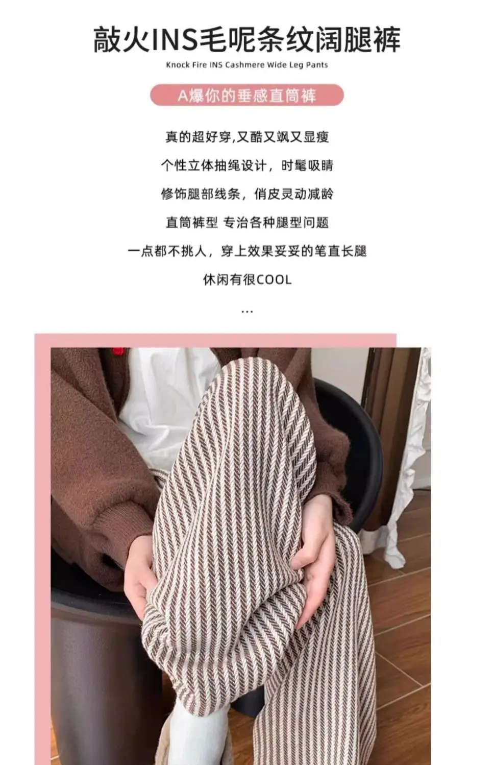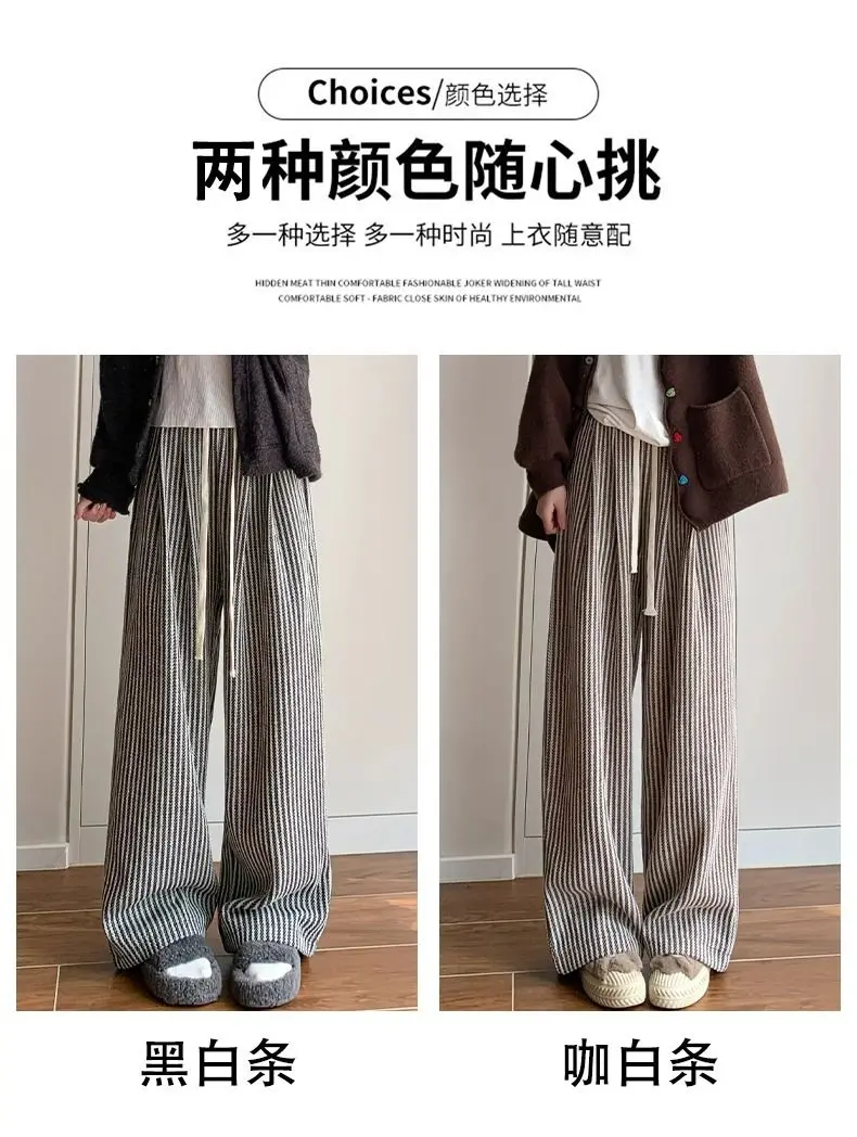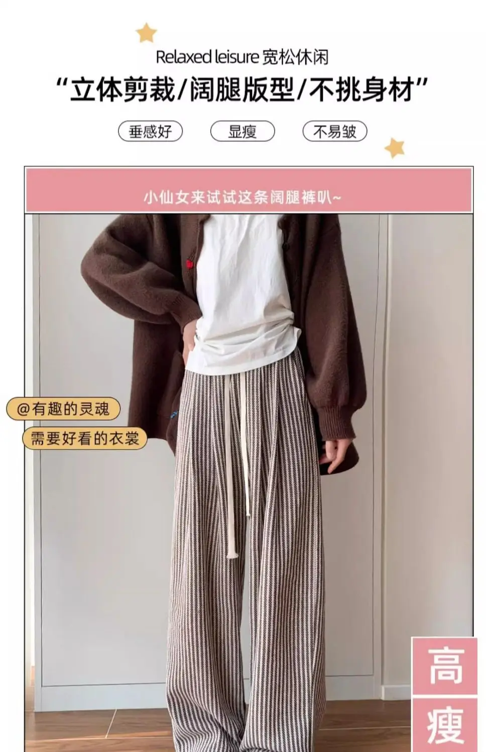 Pantaloni primavera autunno donna retrò a righe lavorati a maglia casual quotidiano semplici pantaloni a gamba larga a vita alta temperamento elegante femminile tutto-fiammifero