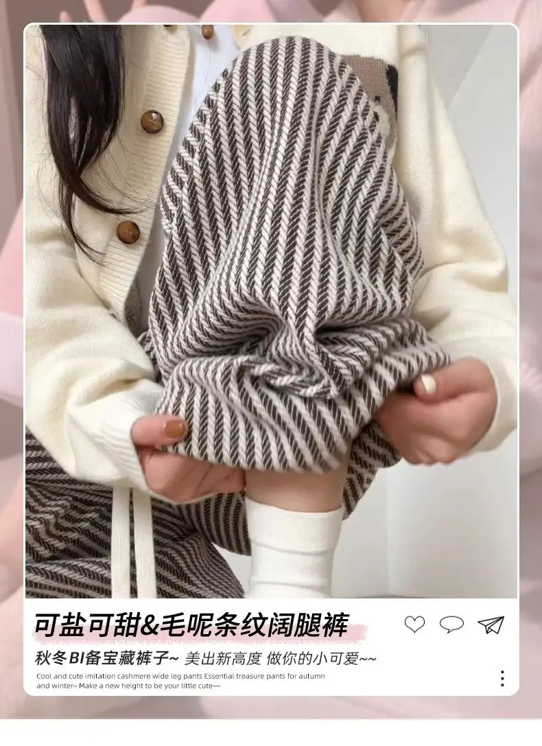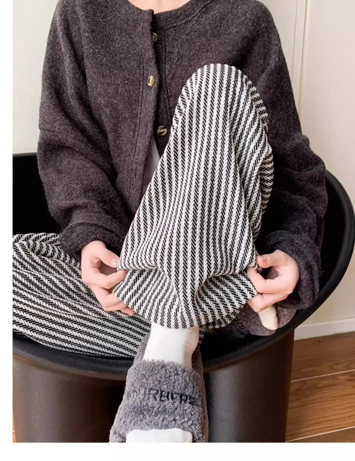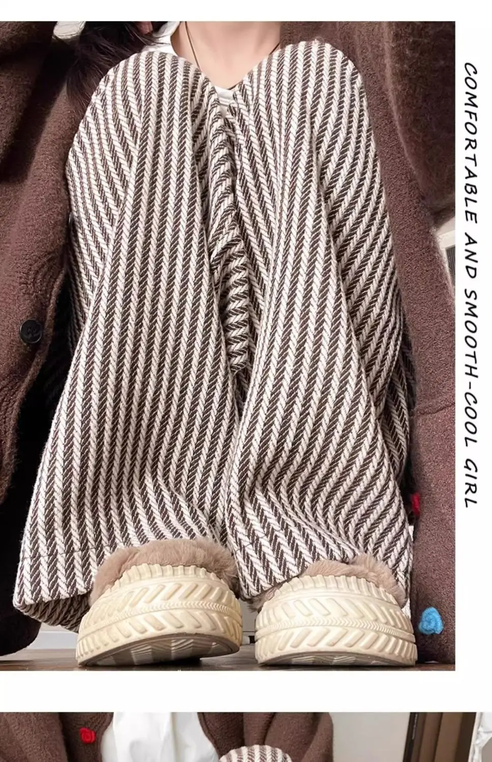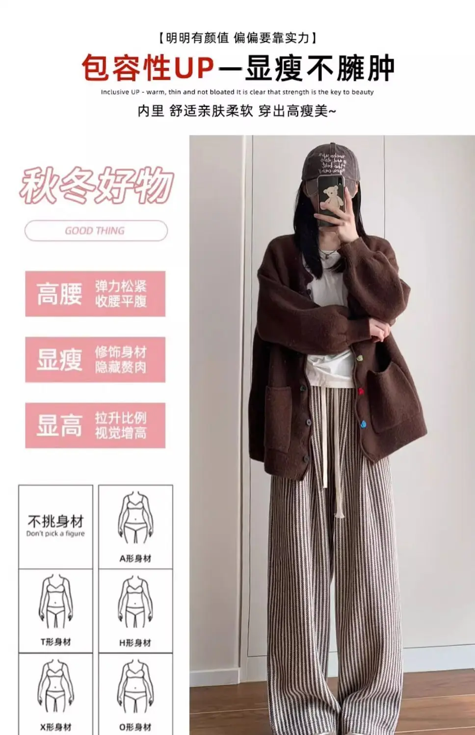 Pantaloni primavera autunno donna retrò a righe lavorati a maglia casual quotidiano semplici pantaloni a gamba larga a vita alta temperamento elegante femminile tutto-fiammifero