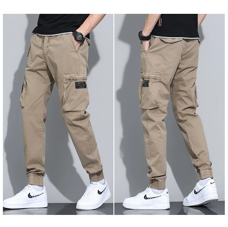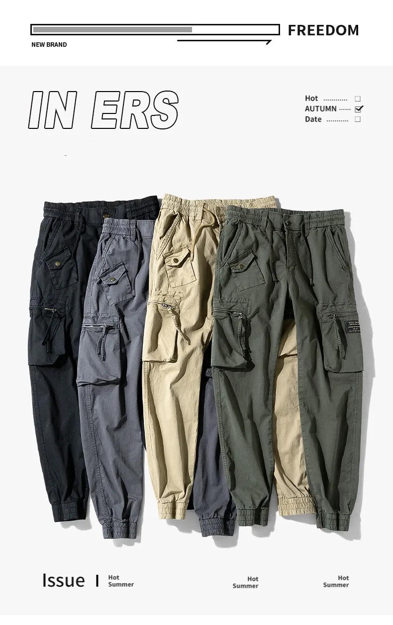 Pantaloni primaverili e autunnali da uomo Pantaloni cargo in cotone Pantaloni di abbigliamento di moda Pantaloni da uomo con segnaletica ricamata multitasche