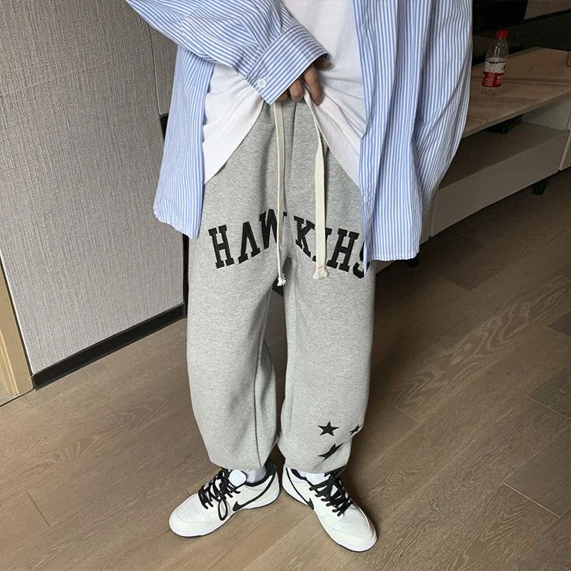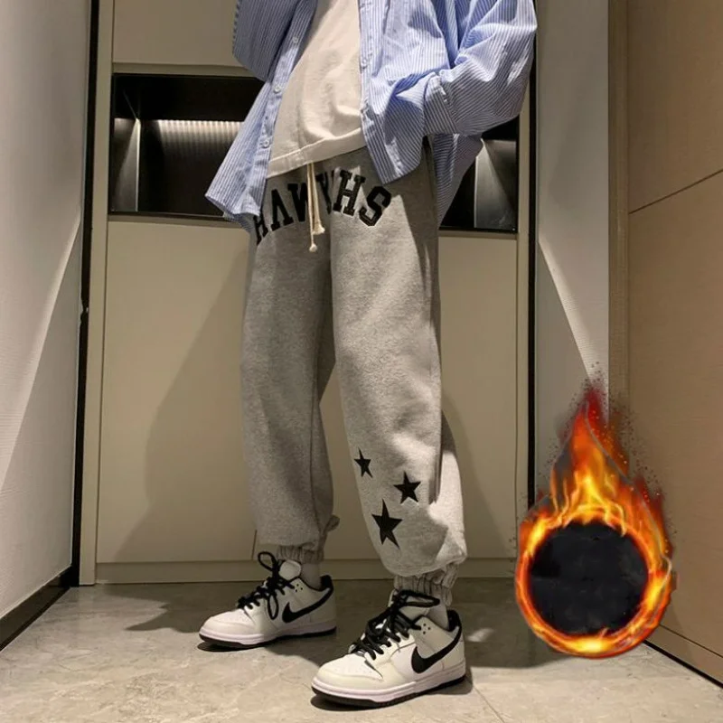Pantaloni sanitari in pile autunno inverno moda tendenza Hip Hop uomo tasche elastiche in vita patchwork pantaloni sportivi larghi dritti