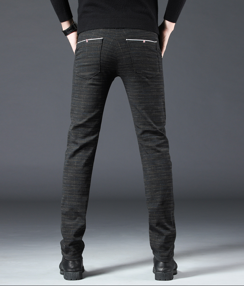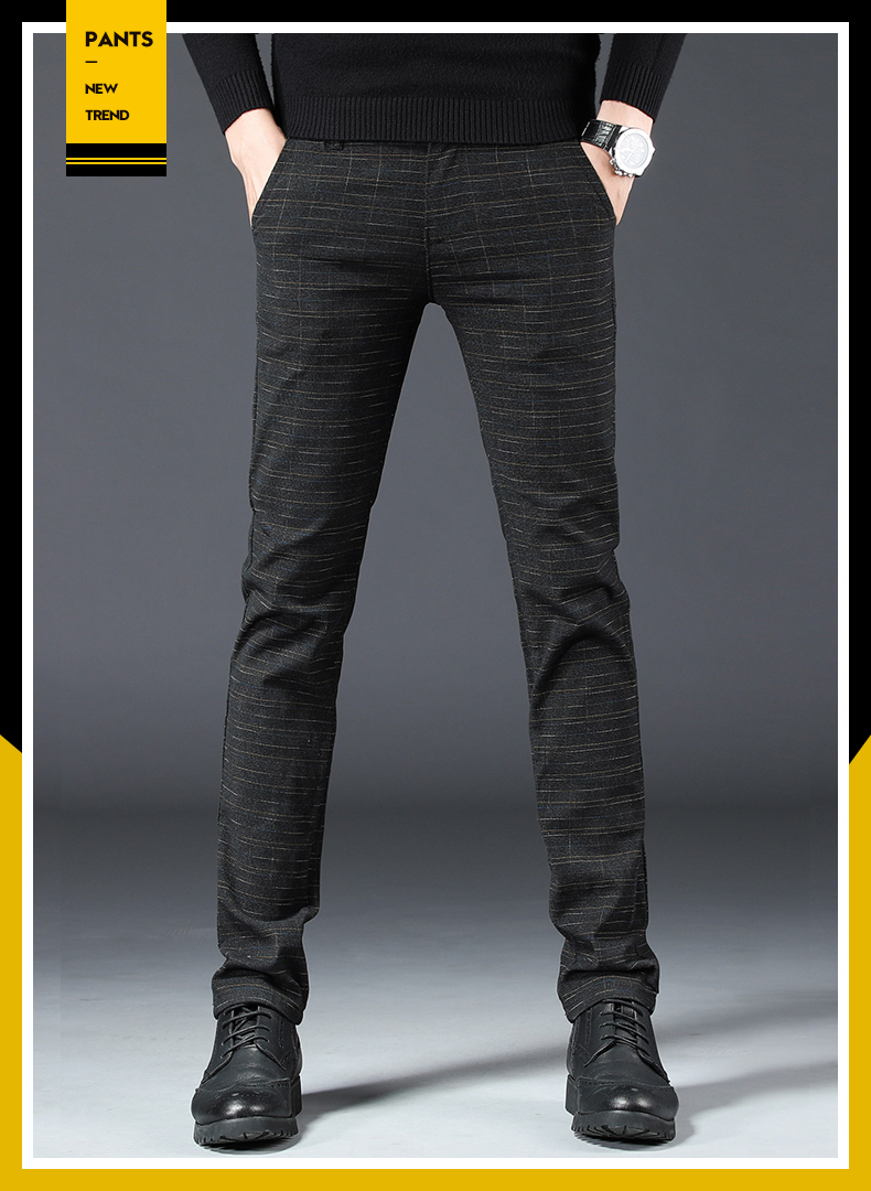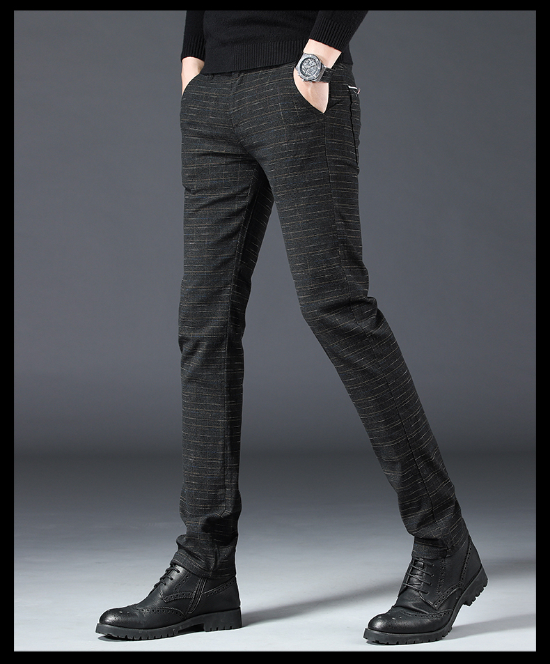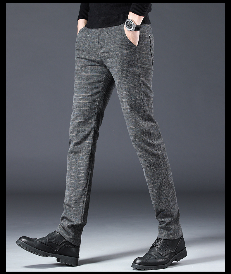 Pantaloni slim da uomo spazzolati autunno inverno imitazione cotone lino elastico piccoli pantaloni neri casual da lavoro scozzesi dritti