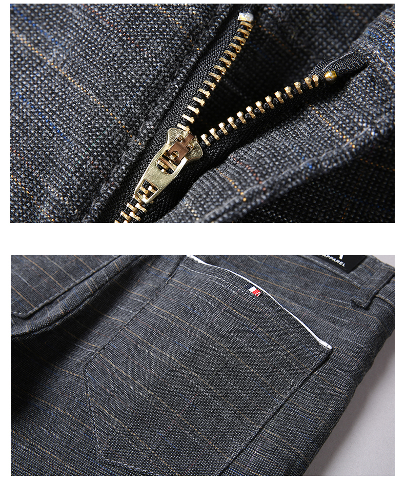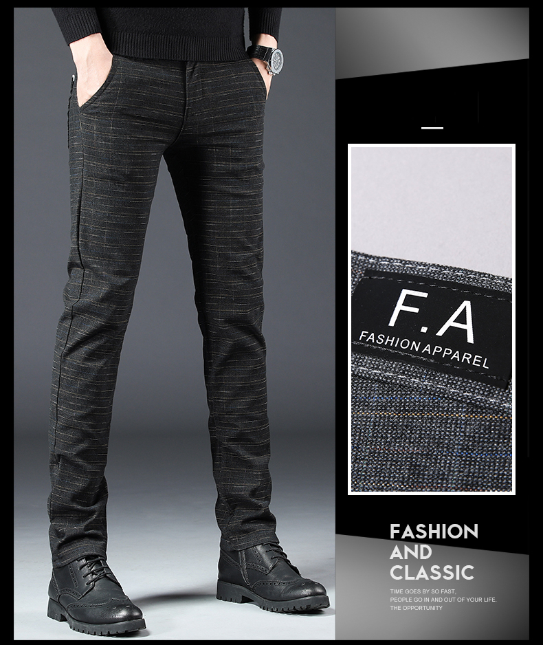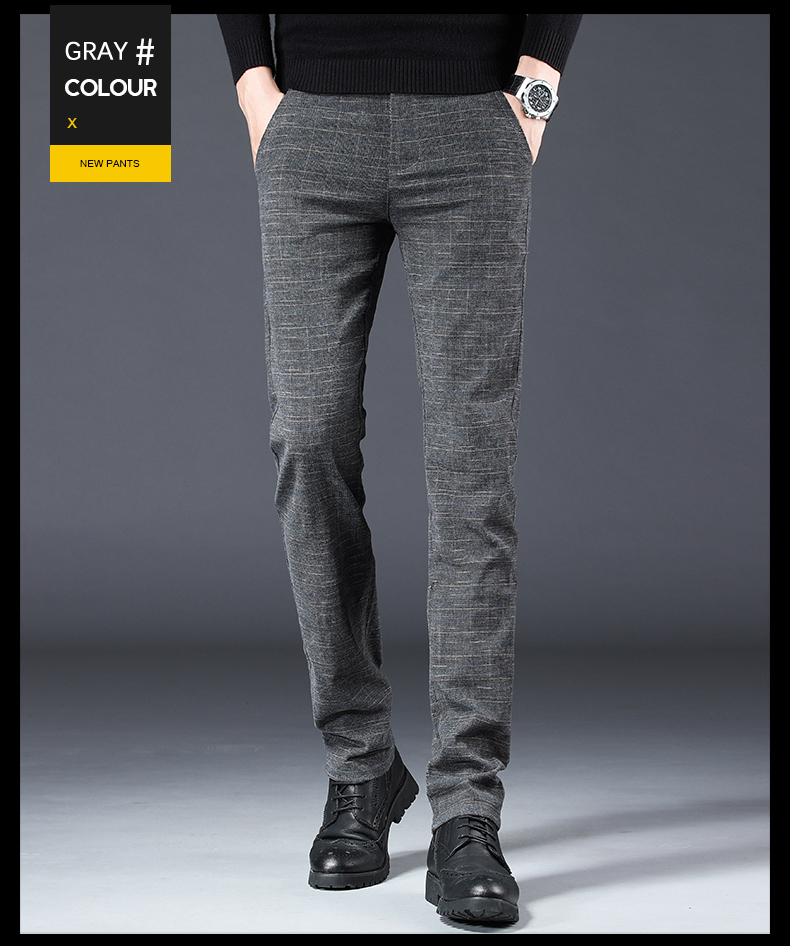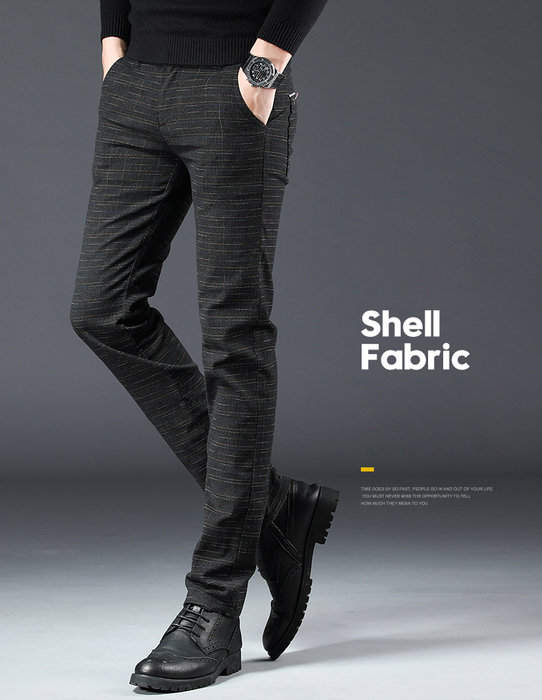Pantaloni slim da uomo spazzolati autunno inverno imitazione cotone lino elastico piccoli pantaloni neri casual da lavoro scozzesi dritti