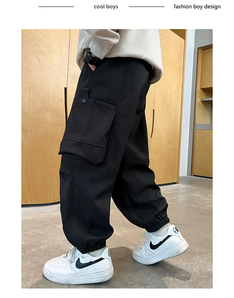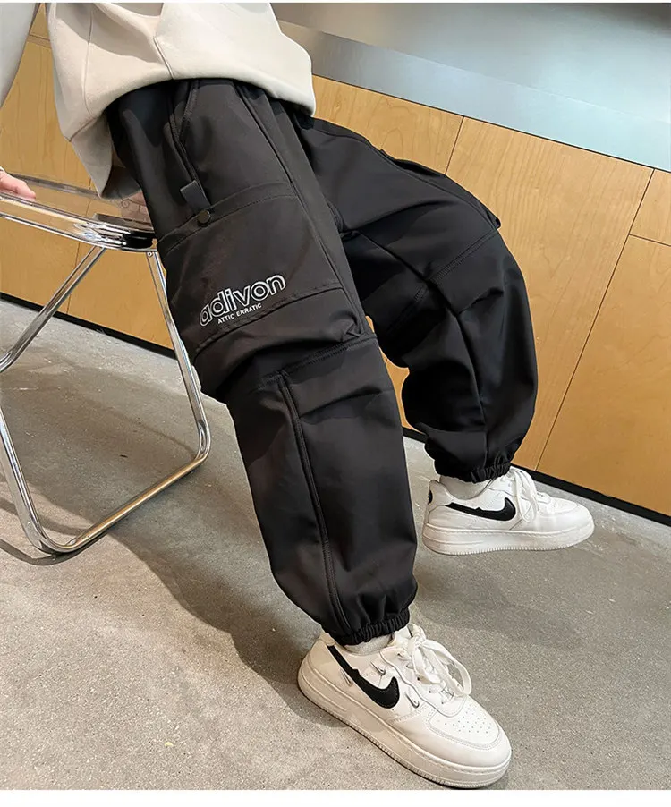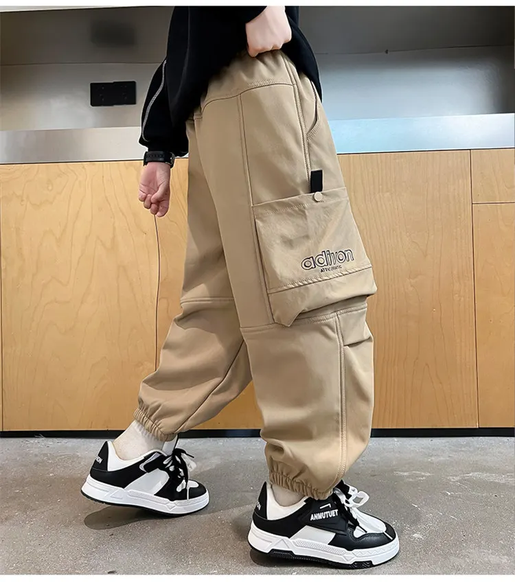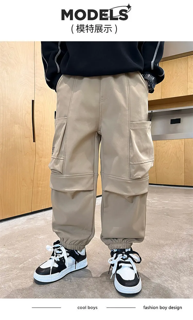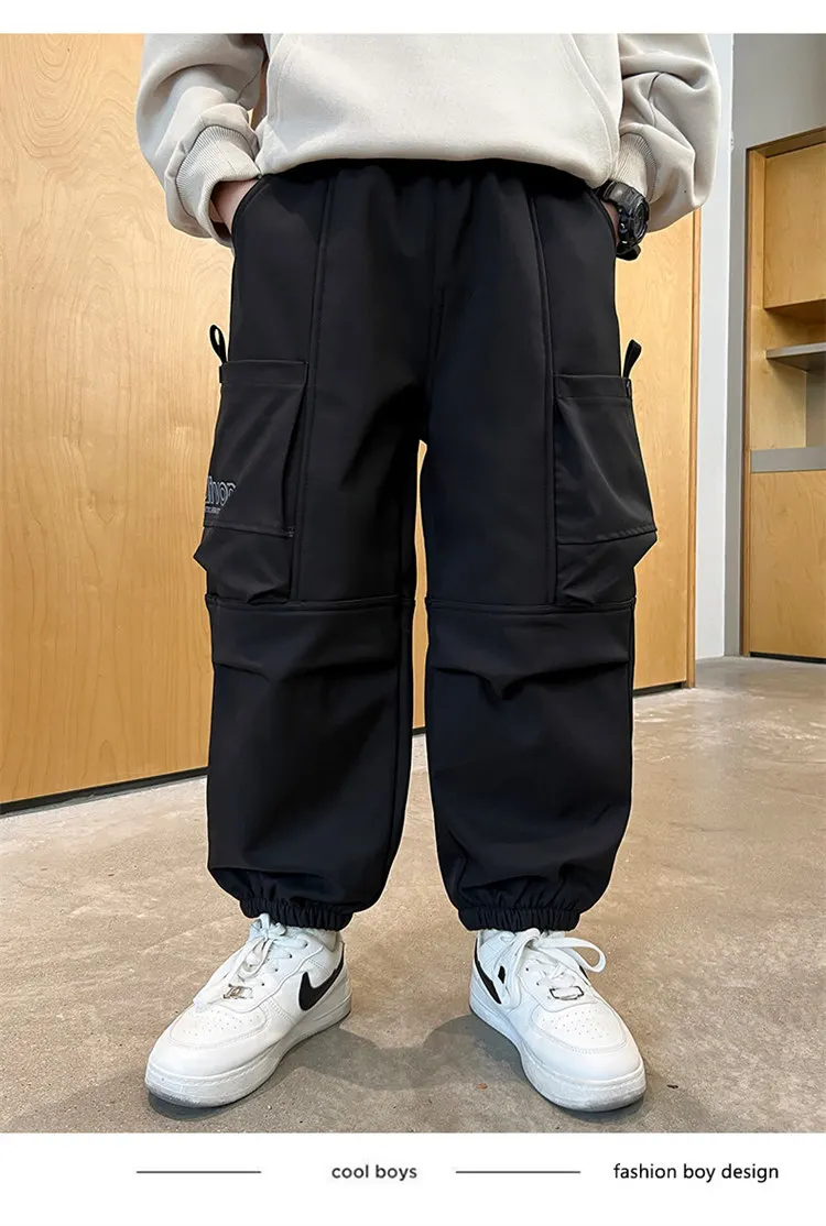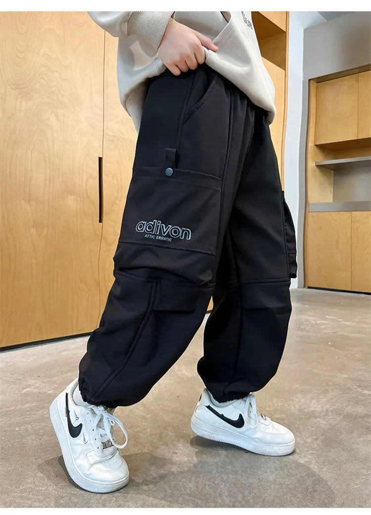 Pantaloni sportivi a gamba dritta foderati in pile ispessito di qualità autunno e inverno da ragazzo.4-16 anni