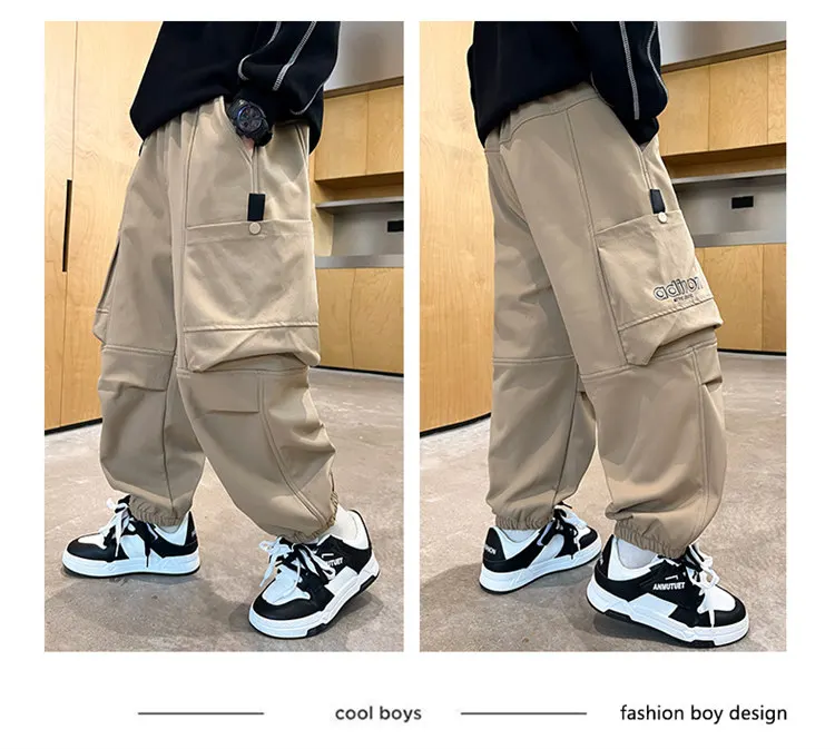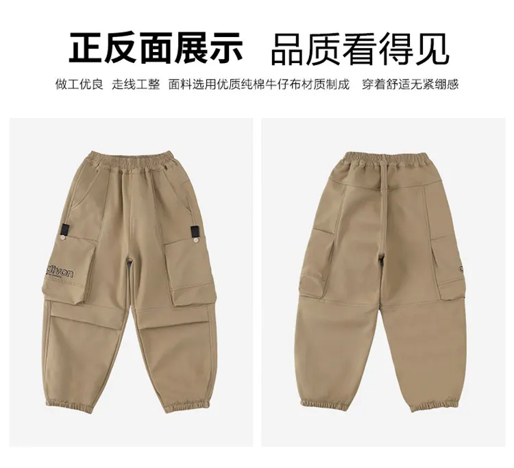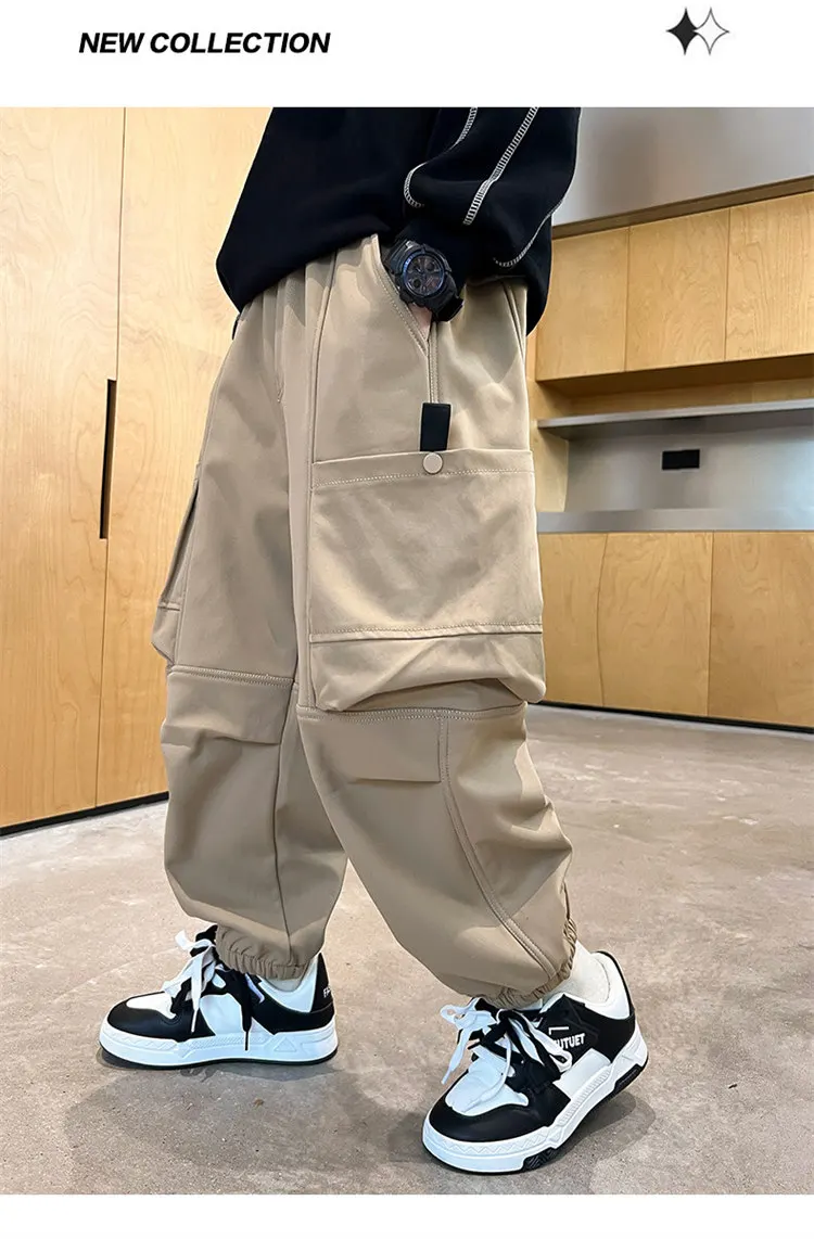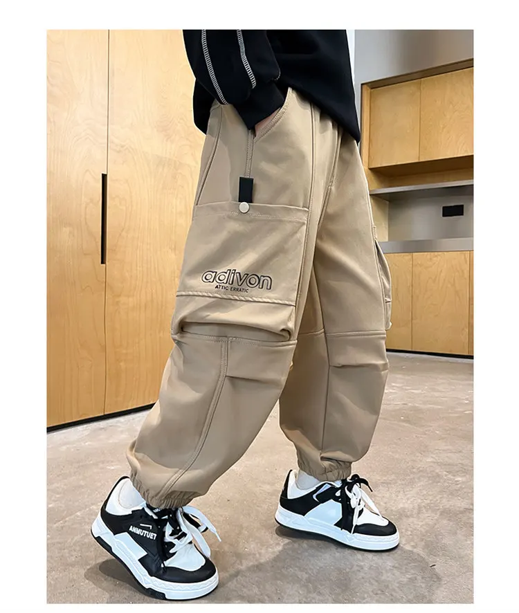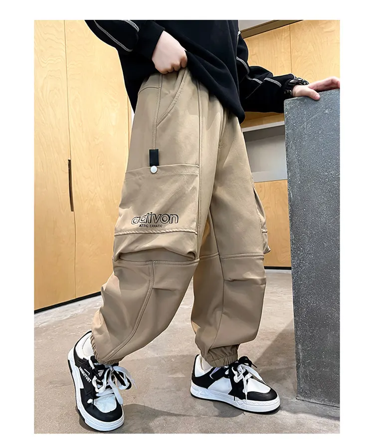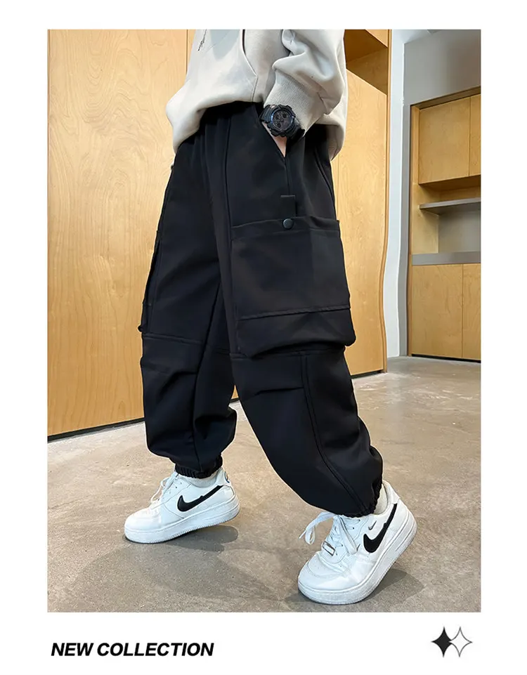 Pantaloni sportivi a gamba dritta foderati in pile ispessito di qualità autunno e inverno da ragazzo.4-16 anni
