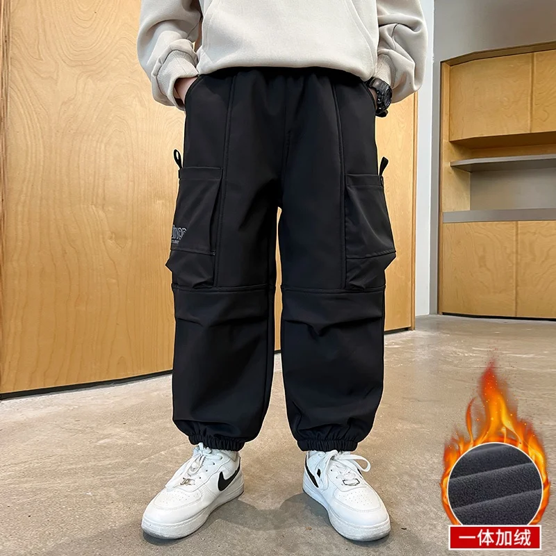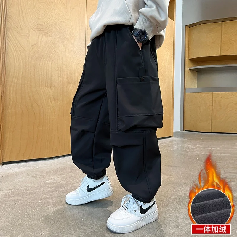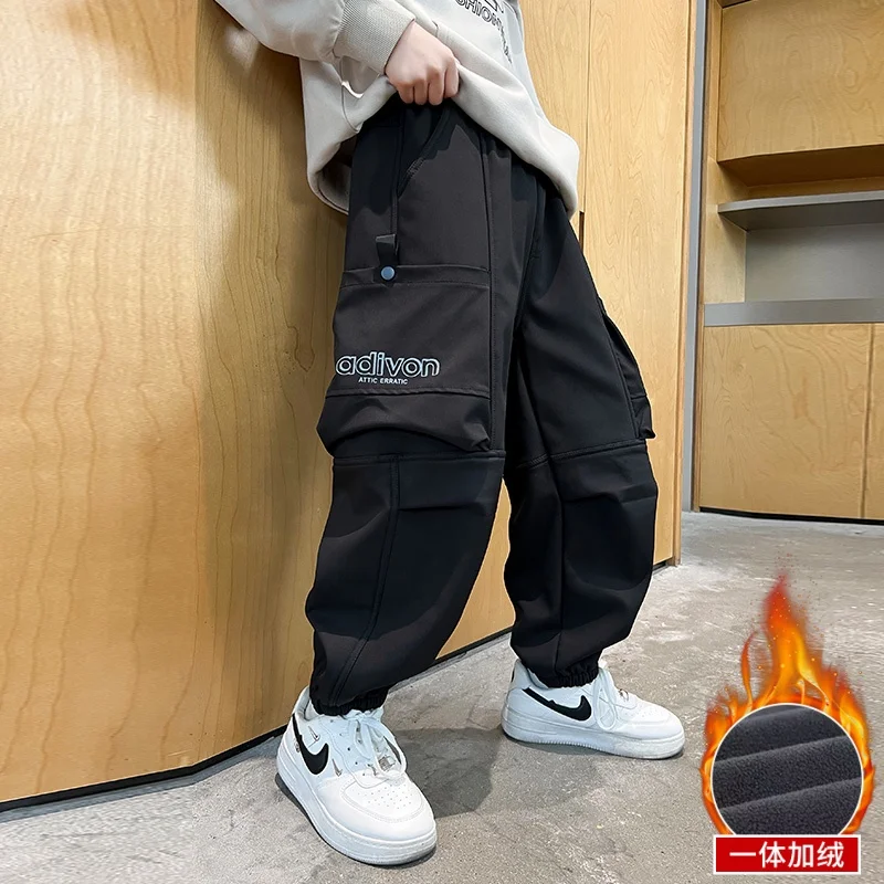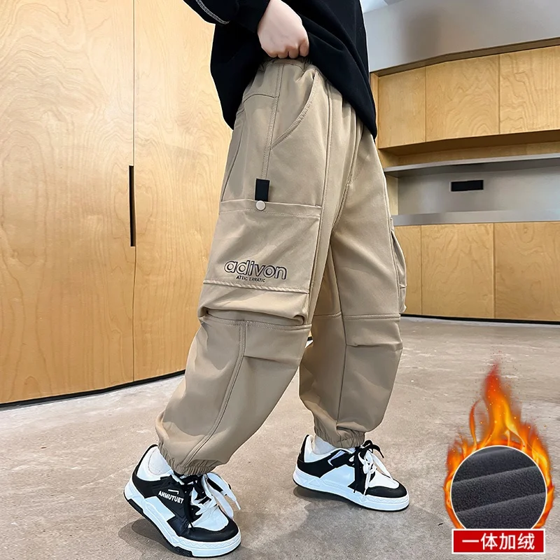 Pantaloni sportivi a gamba dritta foderati in pile ispessito di qualità autunno e inverno da ragazzo.4-16 anni