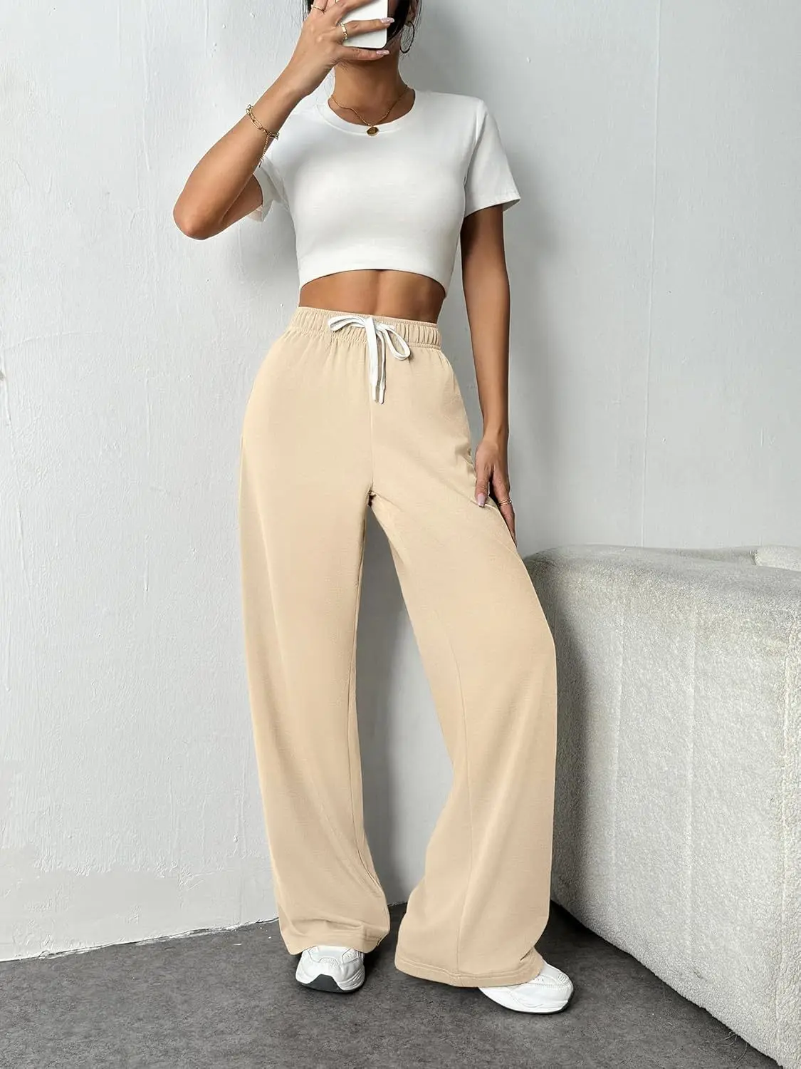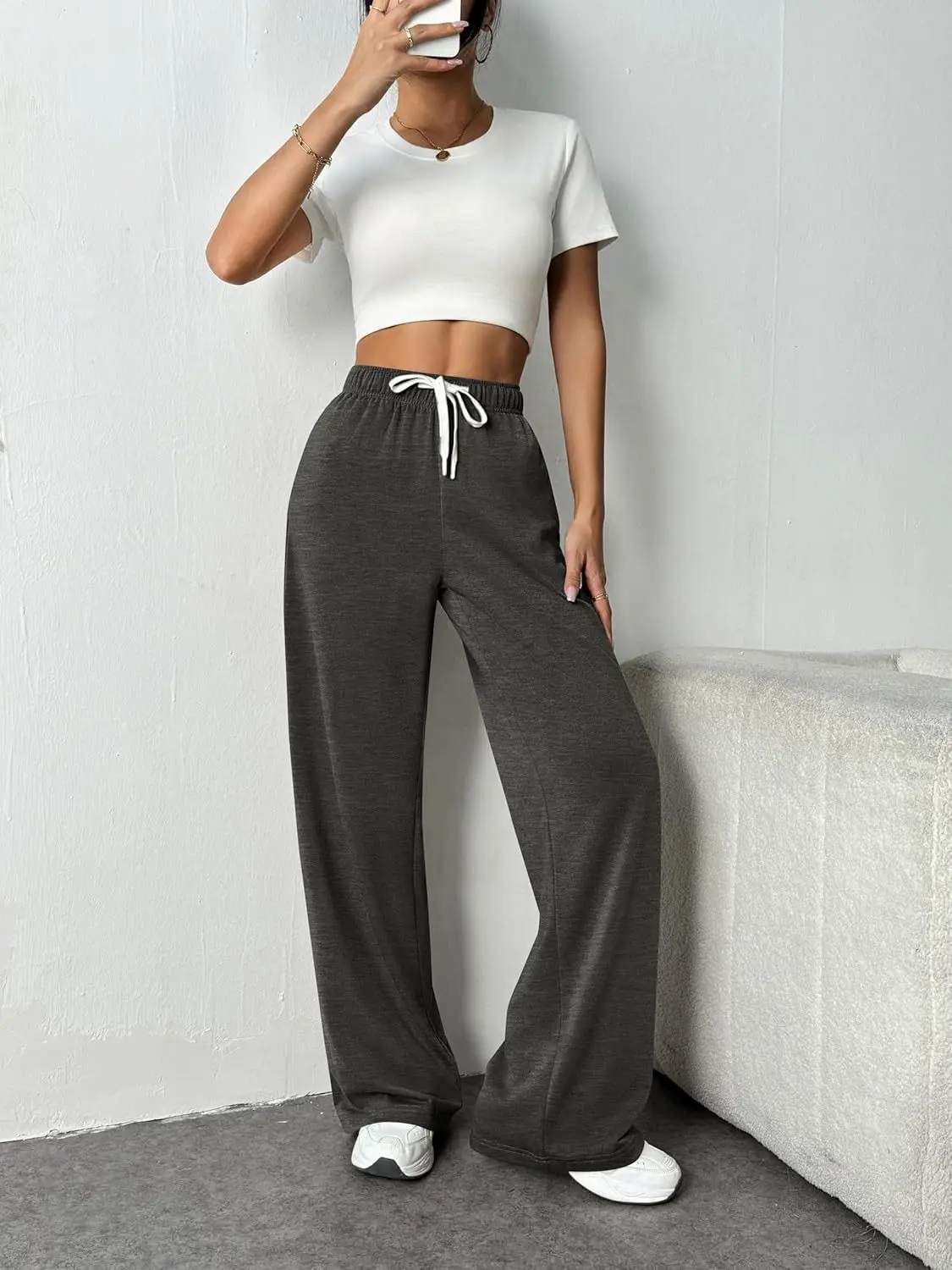 Pantaloni sportivi a gamba larga da donna autunno inverno Pantaloni fitness casual larghi con coulisse a vita alta con tasche