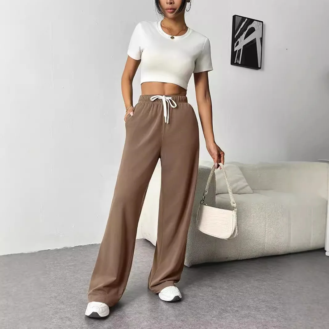 Pantaloni sportivi a gamba larga da donna autunno inverno Pantaloni fitness casual larghi con coulisse a vita alta con tasche