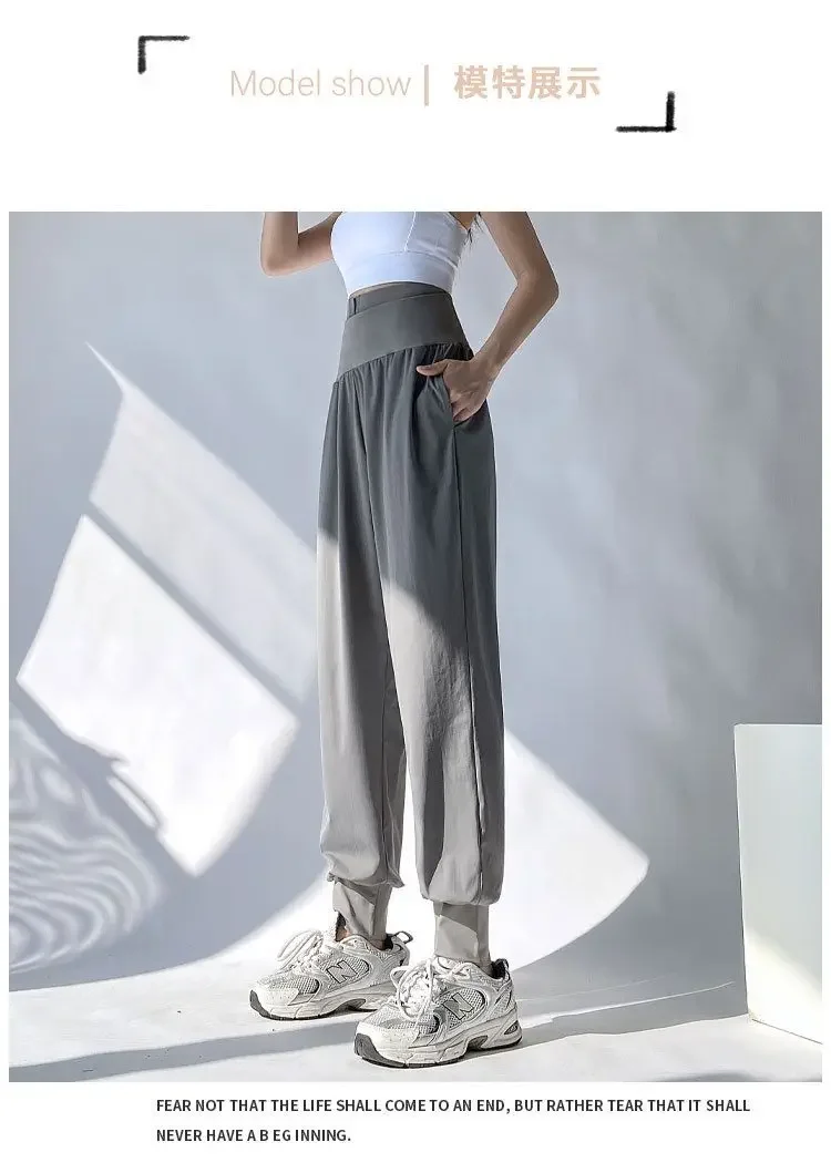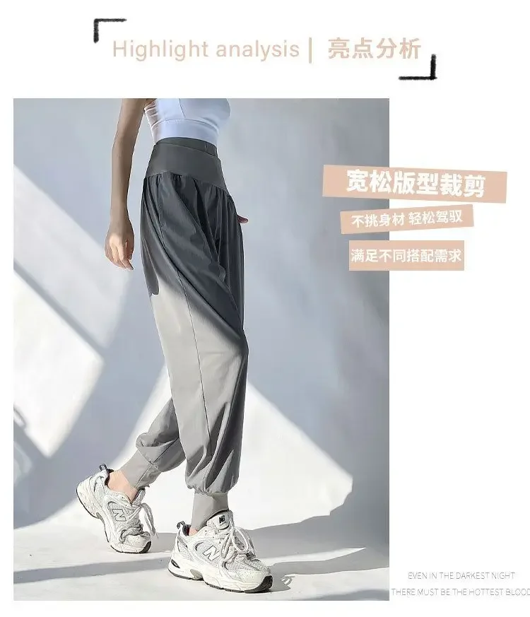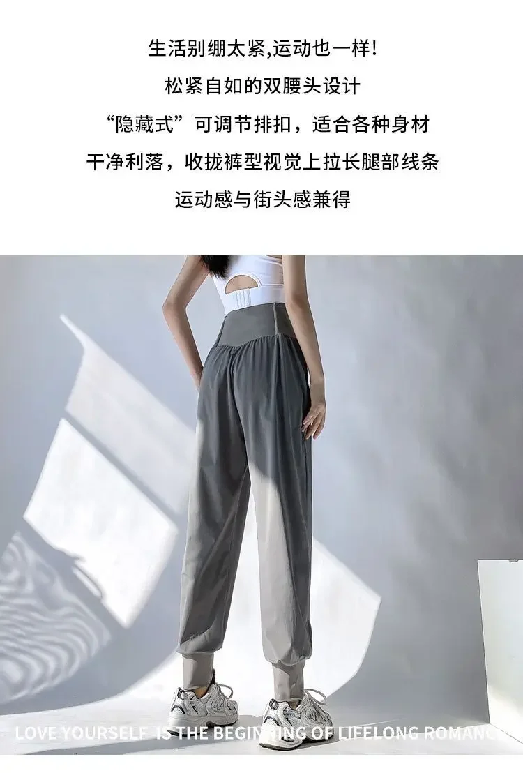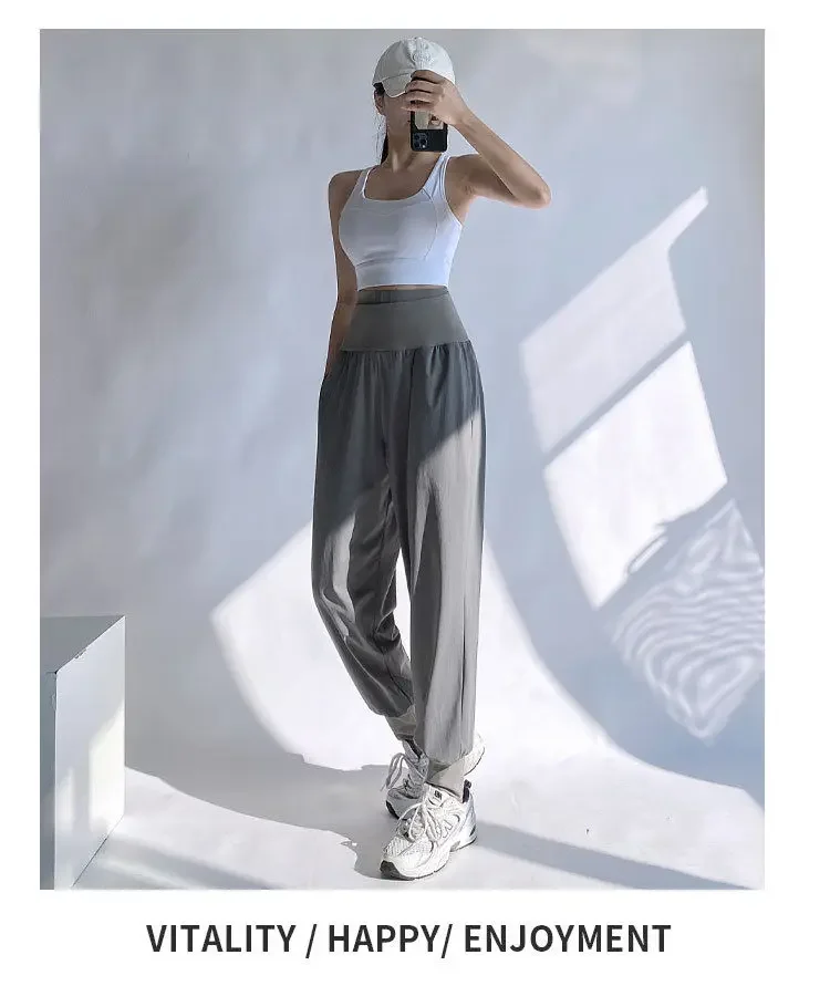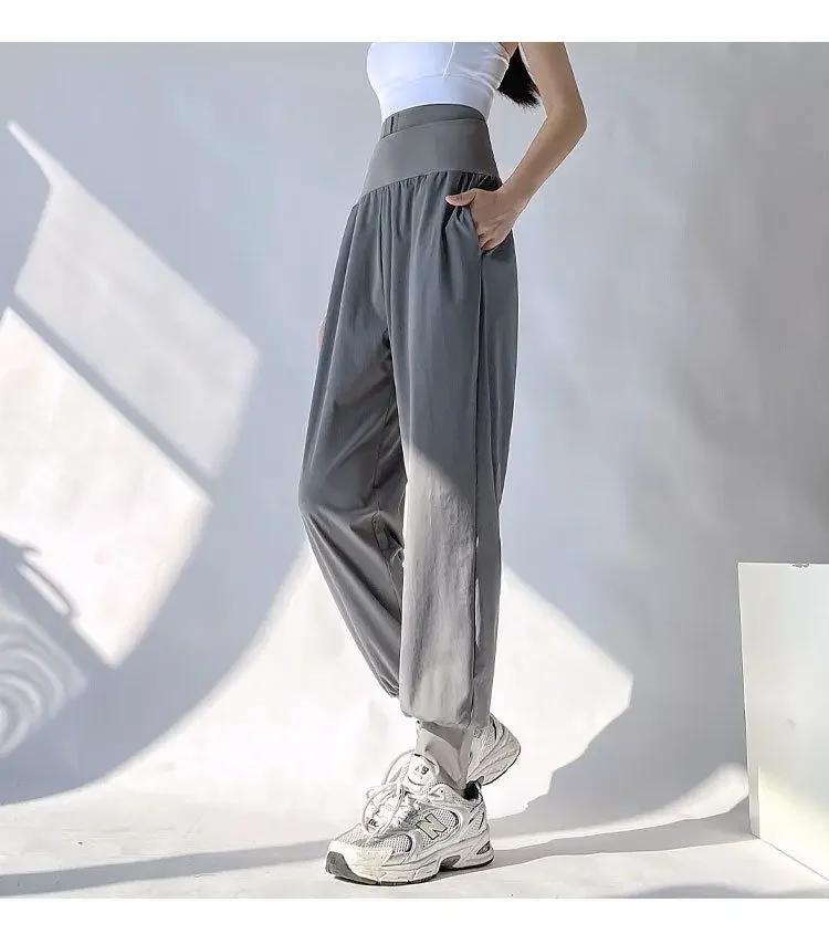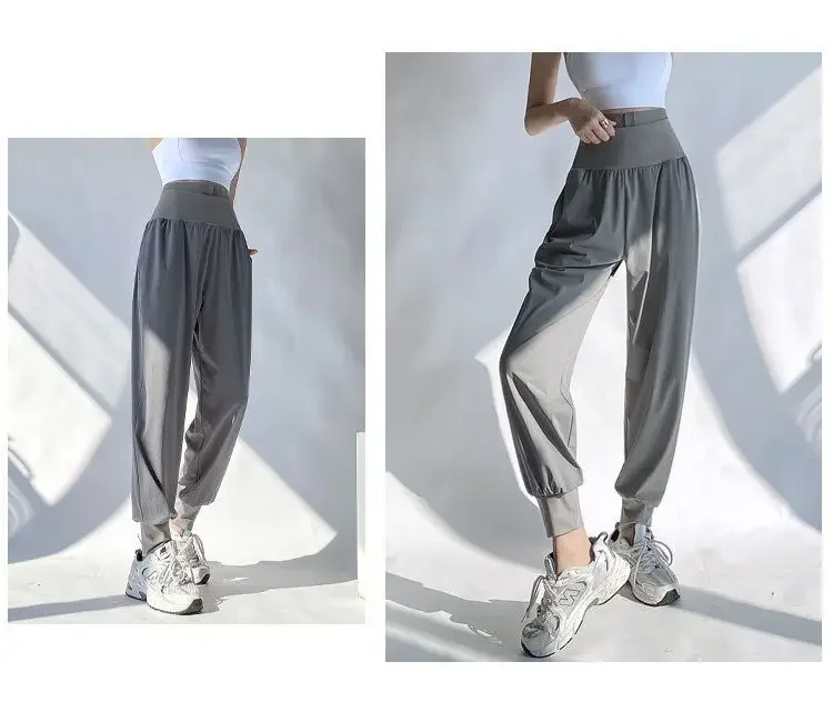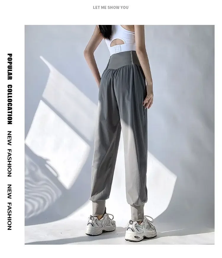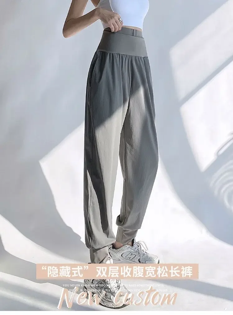 Pantaloni sportivi addominali ad asciugatura rapida per donna Pantaloni larghi dimagranti da corsa Fitness Danza all’aperto Pantaloni Harem casual