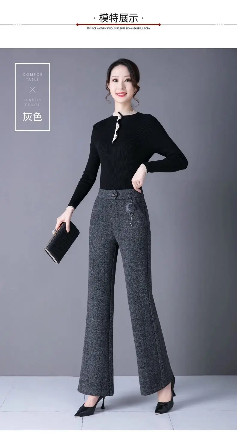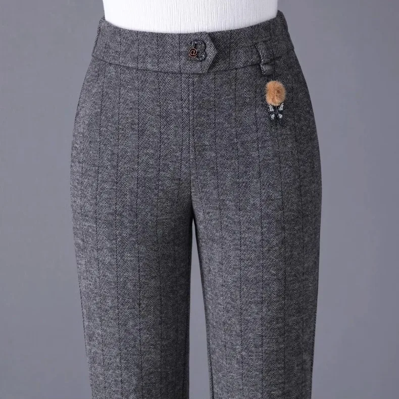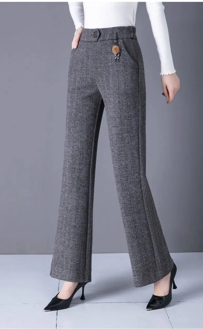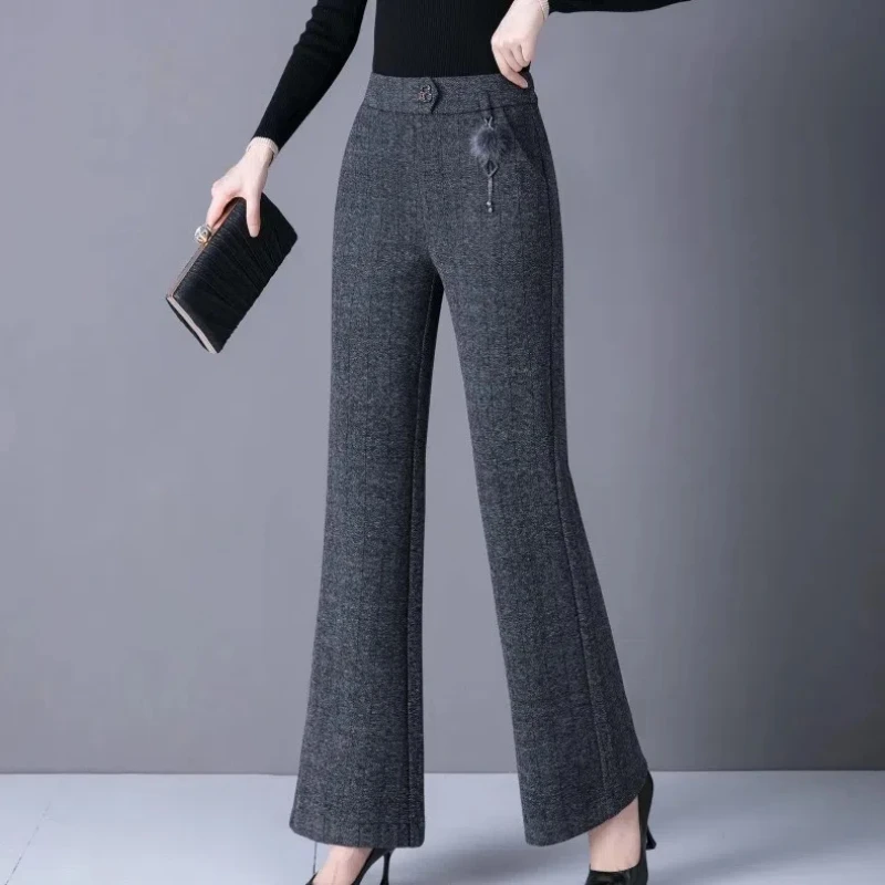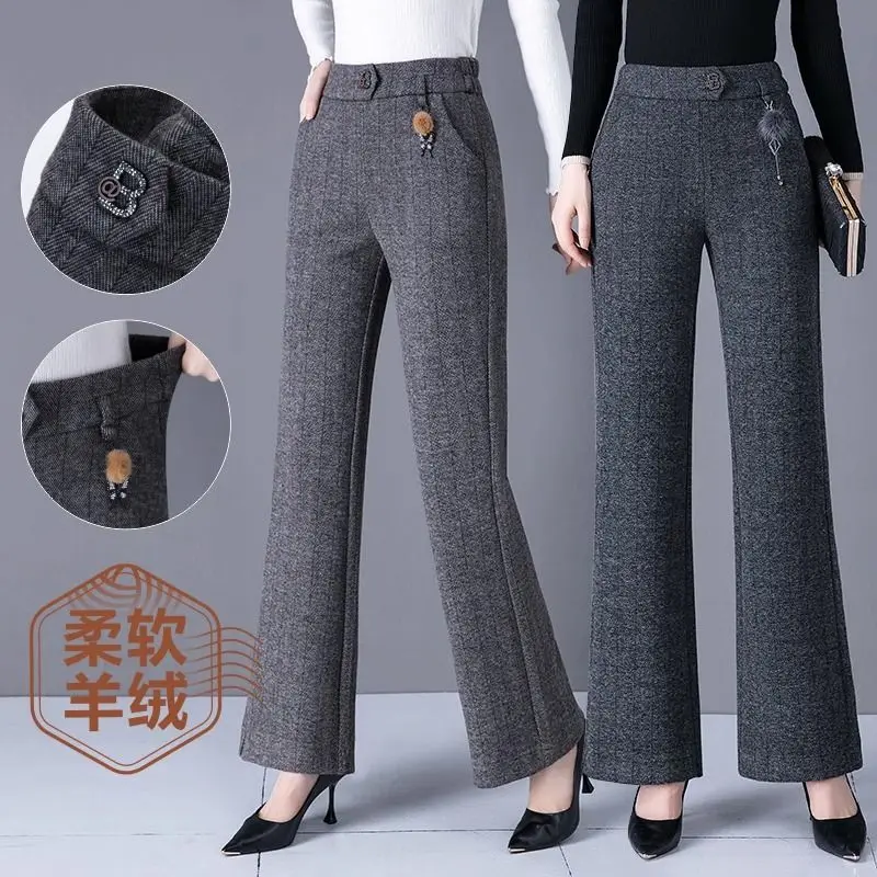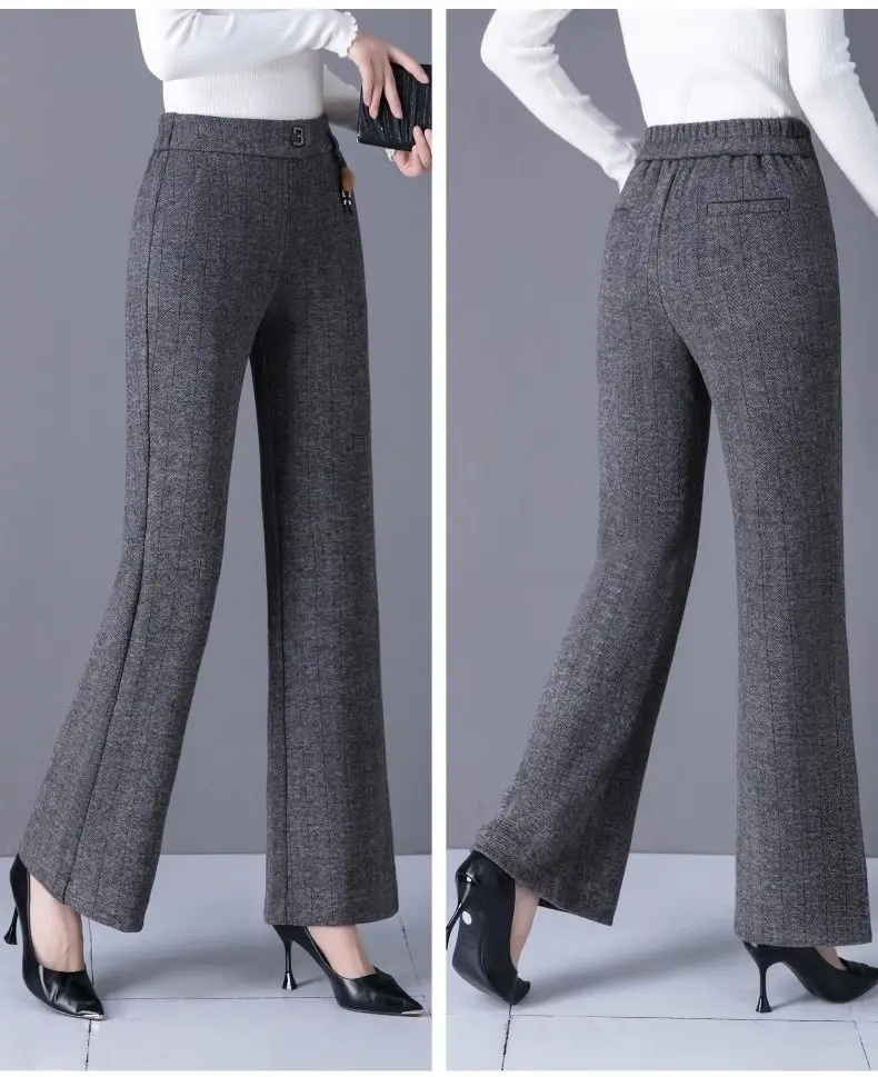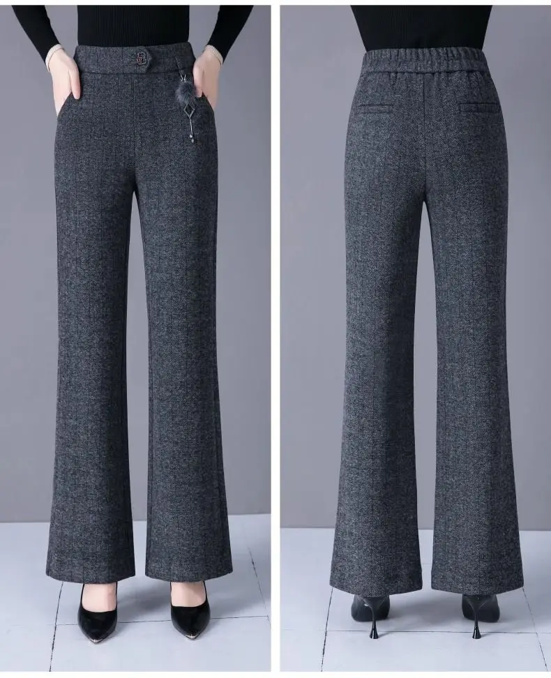 Pantaloni svasati stile casual nuovi ispessiti in autunno e inverno Pantaloni da donna mamma alla moda e caldi di grandi dimensioni elastici di grandi dimensioni