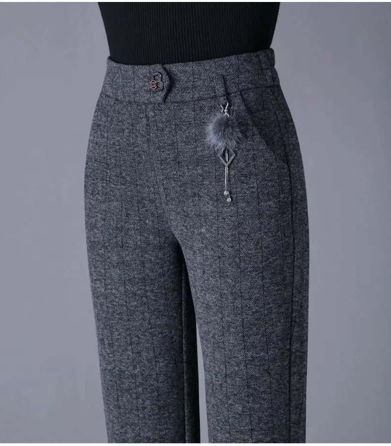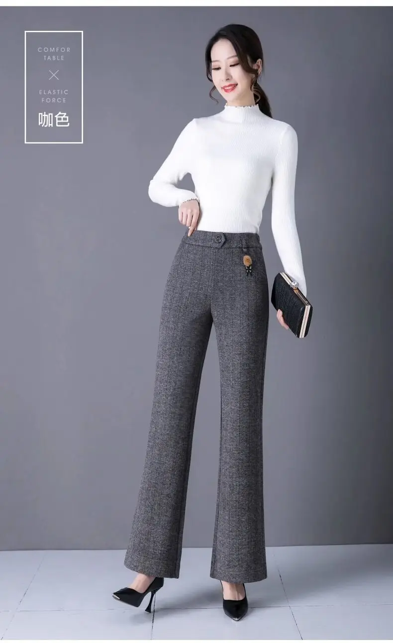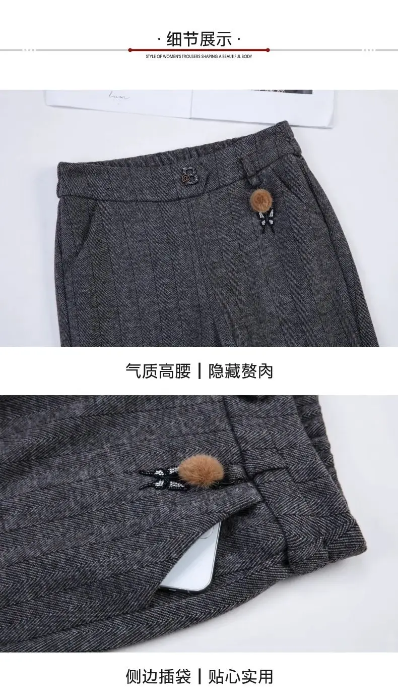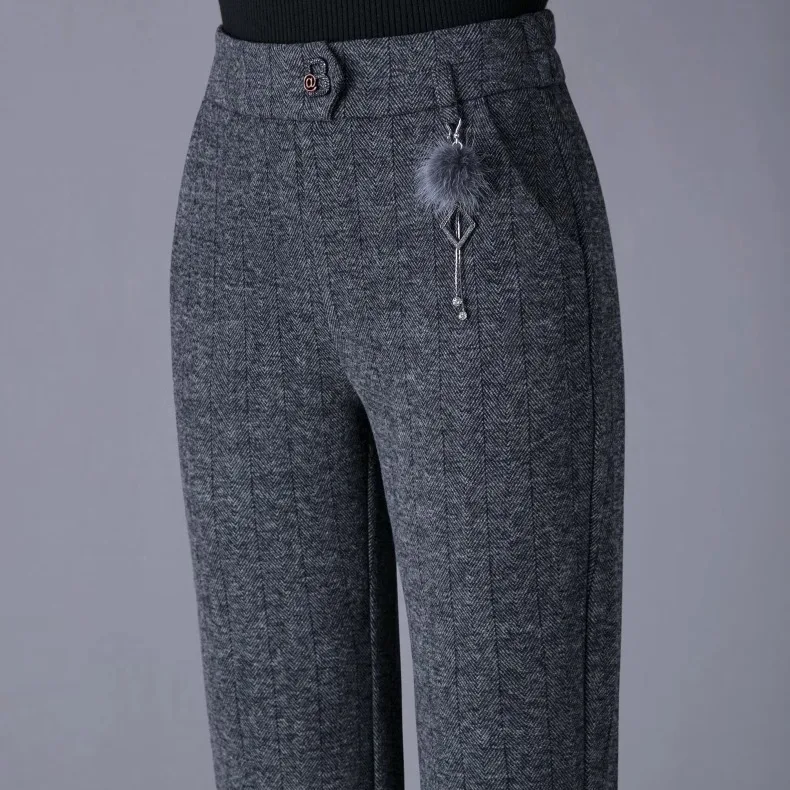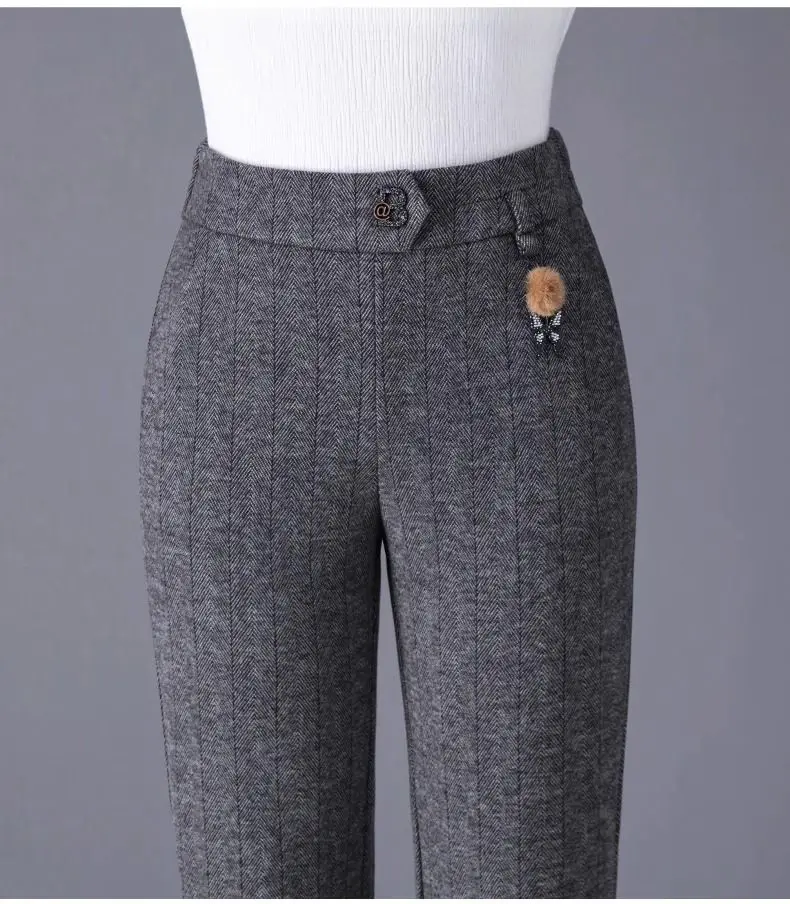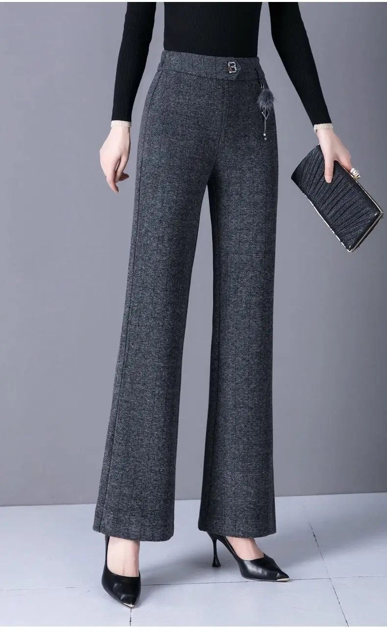 Pantaloni svasati stile casual nuovi ispessiti in autunno e inverno Pantaloni da donna mamma alla moda e caldi di grandi dimensioni elastici di grandi dimensioni