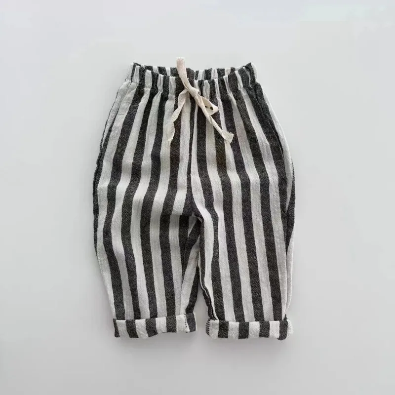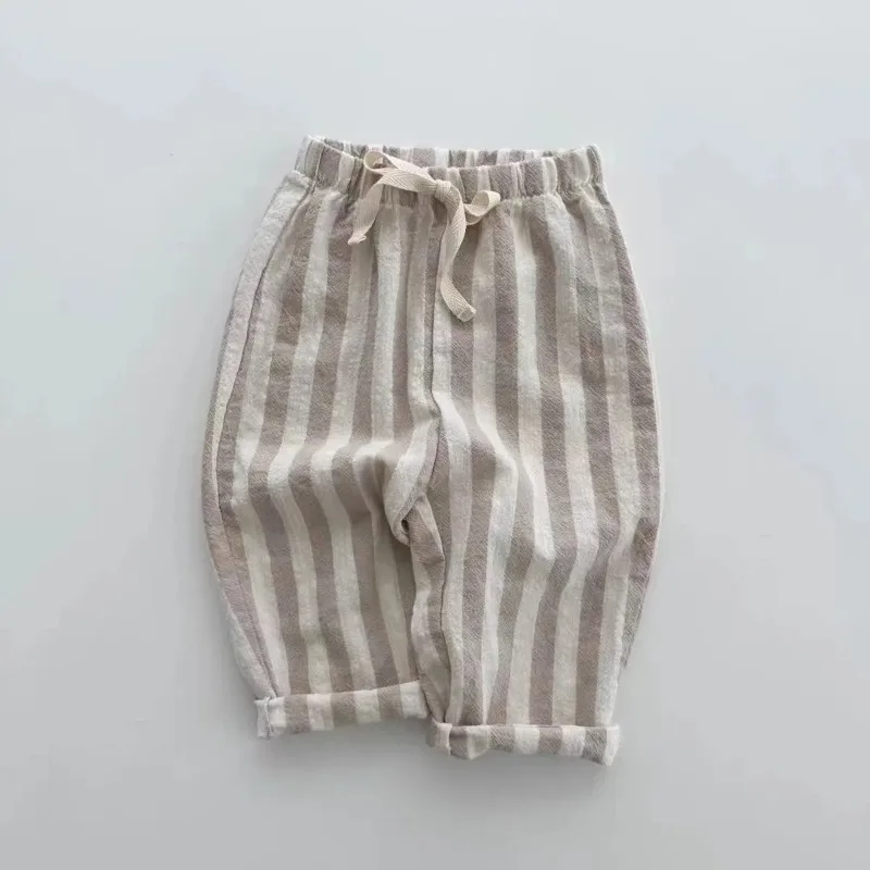 Pantaloni vintage a righe in cotone e lino per ragazzi Pantaloni casual con design tascabile Elastici in vita per abbigliamento per bambina Pantaloni per bambini 1Pantaloni vintage a righe in cotone e lino per ragazzi Pantaloni casual con design tascabile Elastici in vita per abbigliamento per bambina Pantaloni per bambini