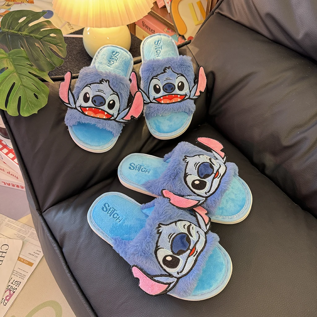 Pantofole a punto cartone animato Scarpe da interno con punta aperta Lilo & Stitch Pantofole da pavimento piatte antiscivolo Regalo per ragazza Primavera Autunno Ragazza Donna