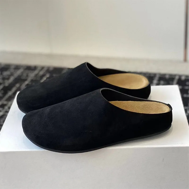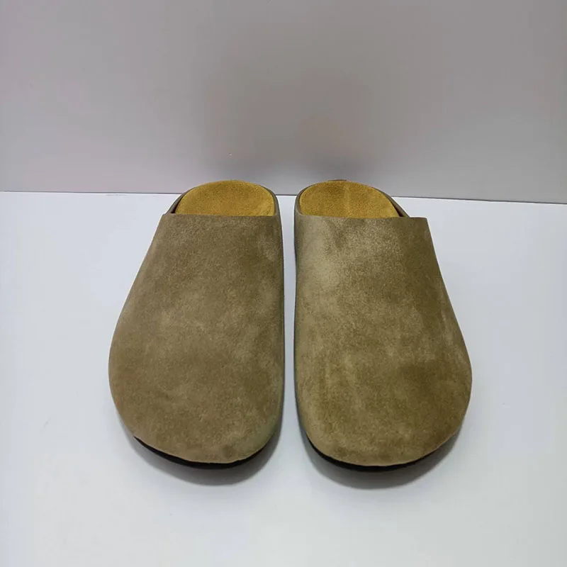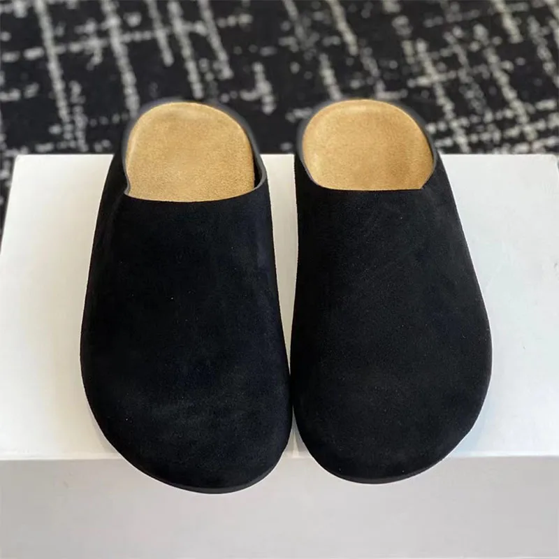 Pantofole con punta tonda Ciabatte piatte in pelle scamosciata da donna Scarpe da donna Scivoli da esterno giornalieri Mezze pantofole con suola spessa Donna 1Pantofole con punta tonda Ciabatte piatte in pelle scamosciata da donna Scarpe da donna Scivoli da esterno giornalieri Mezze pantofole con suola spessa Donna