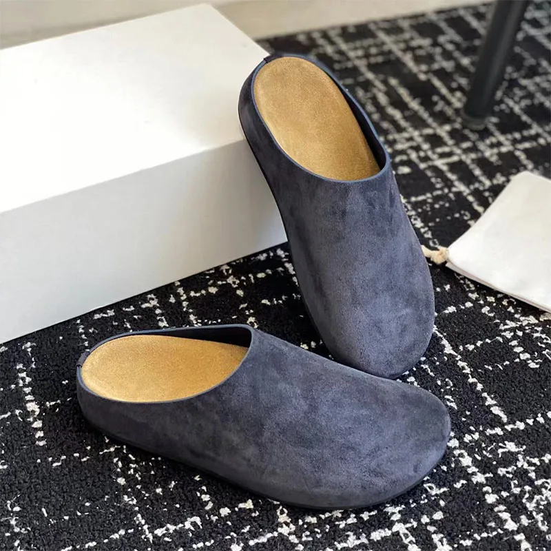 Pantofole con punta tonda Ciabatte piatte in pelle scamosciata da donna Scarpe da donna Scivoli da esterno giornalieri Mezze pantofole con suola spessa Donna