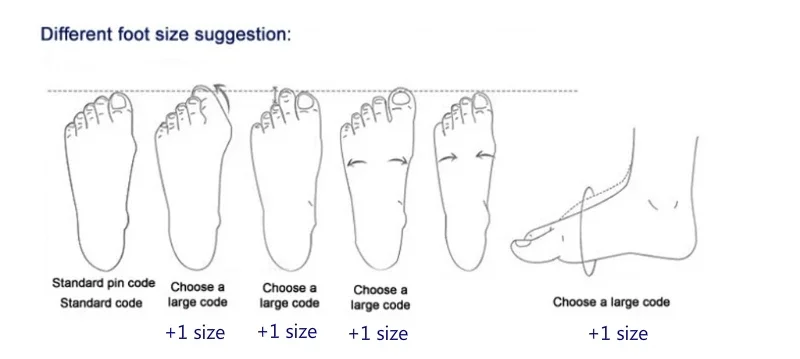 Se il tuo piede è spesso o ampio, suggestamo scegliere una taglia grande!