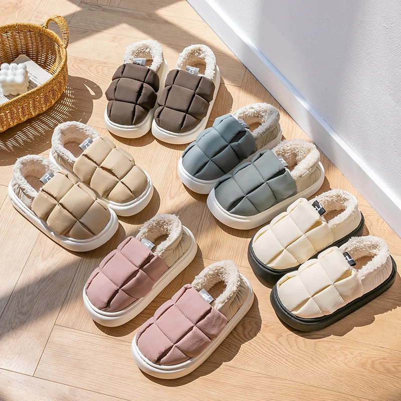 Pantofole da donna in cotone in autunno e inverno, con velluto aggiunto per il calore interno della casa, borsa con fondo spesso da uomo