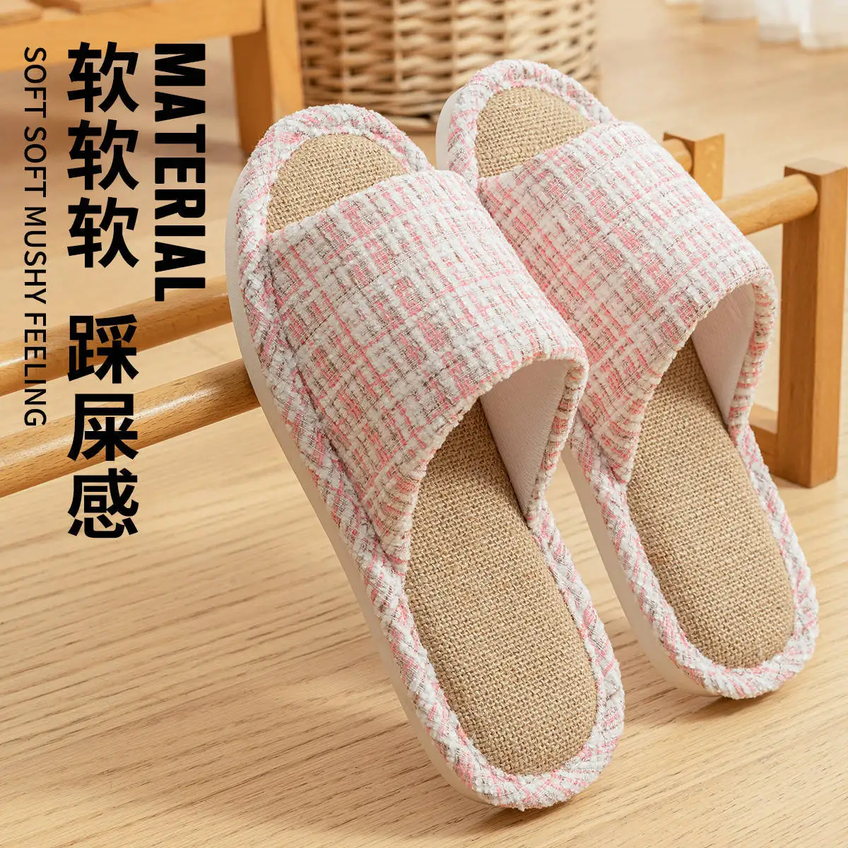 Pantofole in cotone e lino da uomo e da donna, scarpe da casa silenziose per interni, suola morbida per la casa antiscivolo per tutte le stagioni 1Pantofole in cotone e lino da uomo e da donna, scarpe da casa silenziose per interni, suola morbida per la casa antiscivolo per tutte le stagioni
