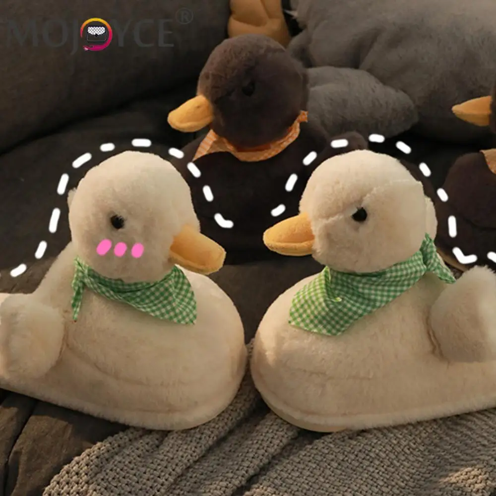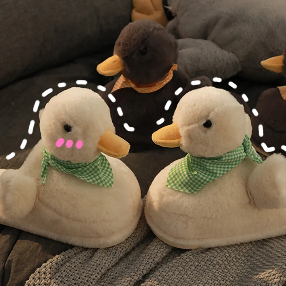 Pantofole in peluche con anatra Pantofole da interno sfocate Pantofole termiche piatte antiscivolo Comode pantofole con animali dei cartoni animati per l’autunno inverno