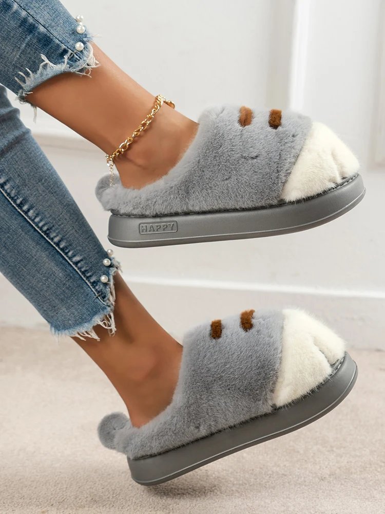 Pantofole in peluche con zampa di gatto 3D Scarpe da casa slip-on calde Comode pantofole termiche piatte Pantofole da coppia con zampa pelosa per l’autunno inverno
