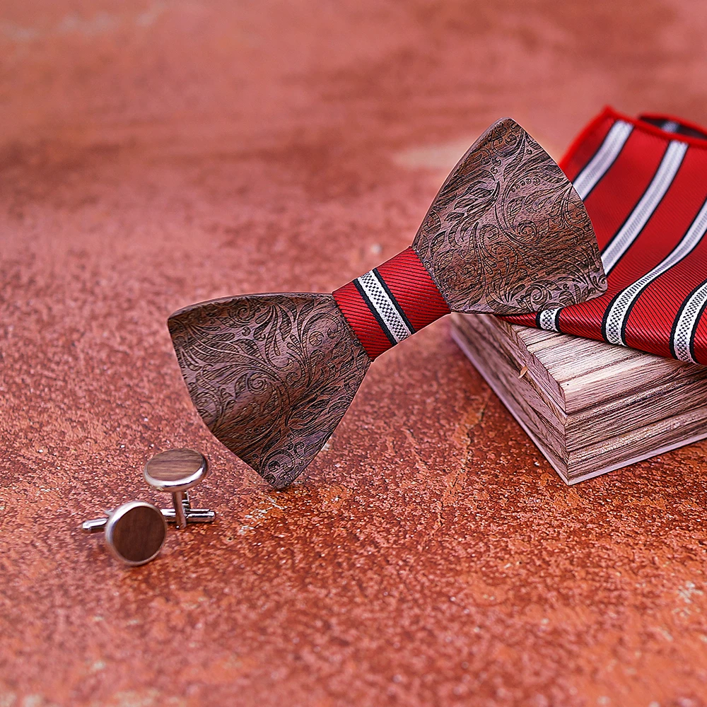 Papillon in legno floreale 3D per uomo cravatta in legno legno elegante papillon gentiluomo fatto a mano farfalla festa di nozze