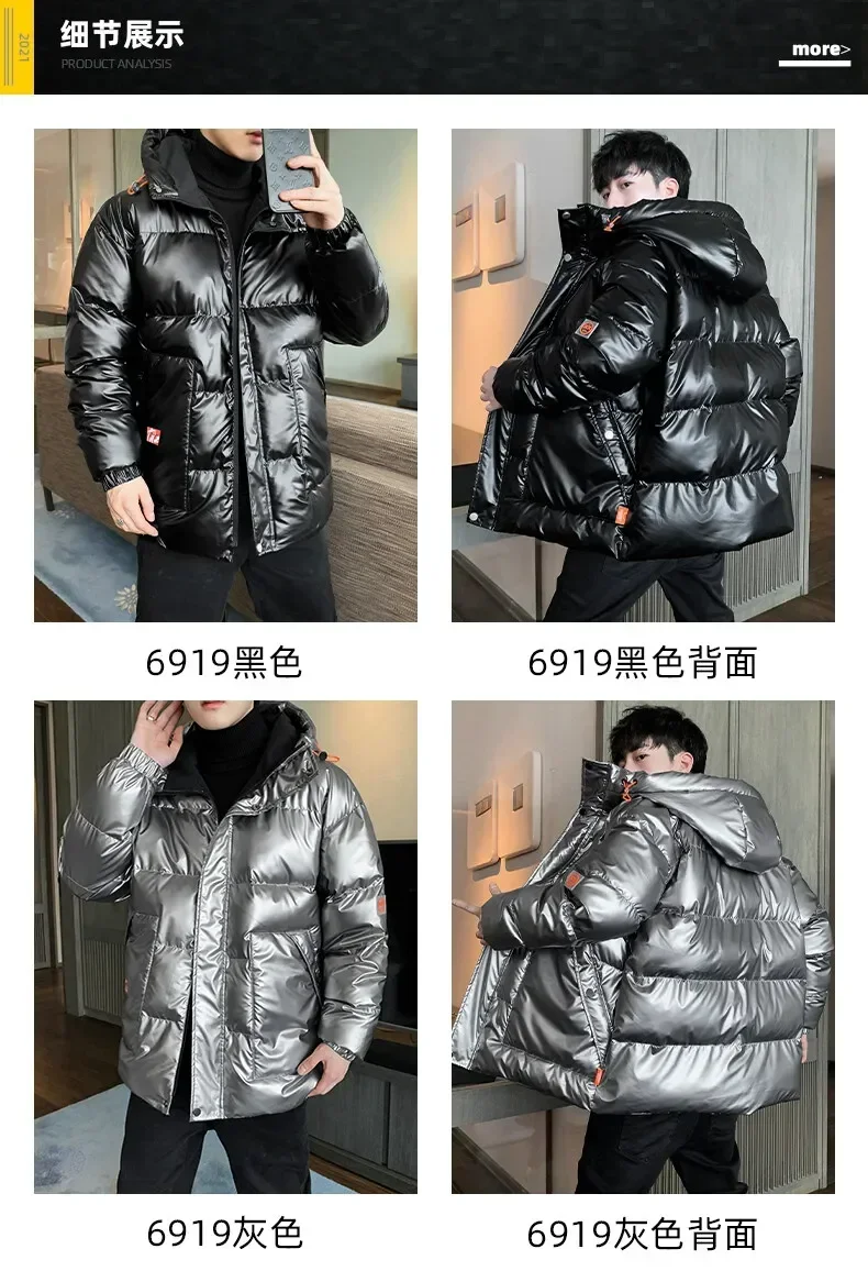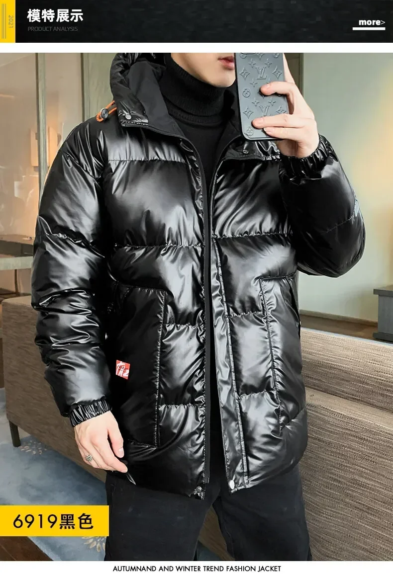 Parka ispessito da uomo casual antivento moda cappotti lucidi cappuccio da uomo caldo hip HOP soprabito invernale Parka imbottito in cotone da uomo