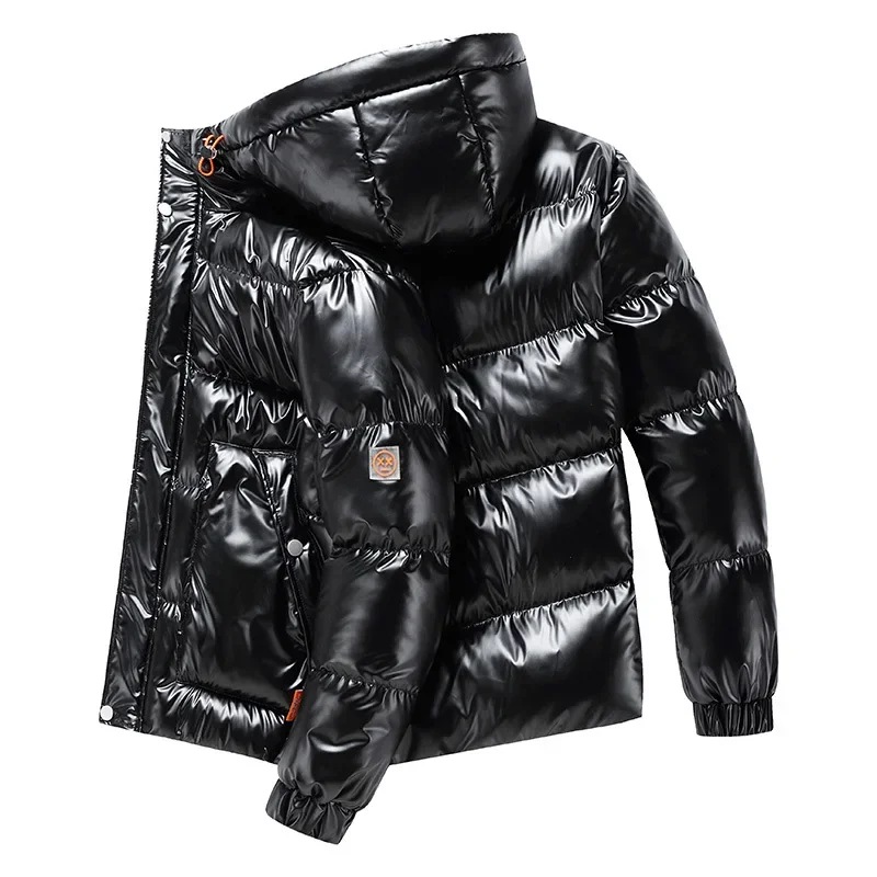 Parka ispessito da uomo casual antivento moda cappotti lucidi cappuccio da uomo caldo hip HOP soprabito invernale Parka imbottito in cotone da uomo