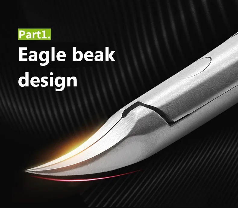 [Design obulare] La testina di taglio è progettata in base alla forma di becco d’aquila, che può tagliare efficacemente le unghie incarnite e le unghie dure spesse senza danneggiano la pelle.