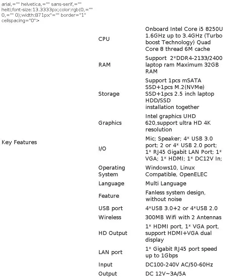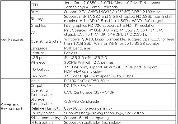 i5 8250U/i5 8350 modello: 4*USB3.0, 4*USB2.0, 1*HDMI, 1*VGA, 1*Lan