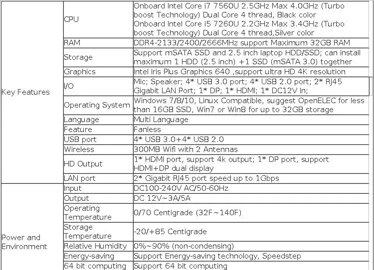 Sistema Barebone senza ram senza archiviazione, si prega di utilizzare l’installazione Ram SODIMM di marca originale per laptop DDR4-2133/2400 da 260 pin, SSD Msata e SSD M.2 NVMe/NGFF/PCIE, non supporta l’installazione Ram DDR3/L.