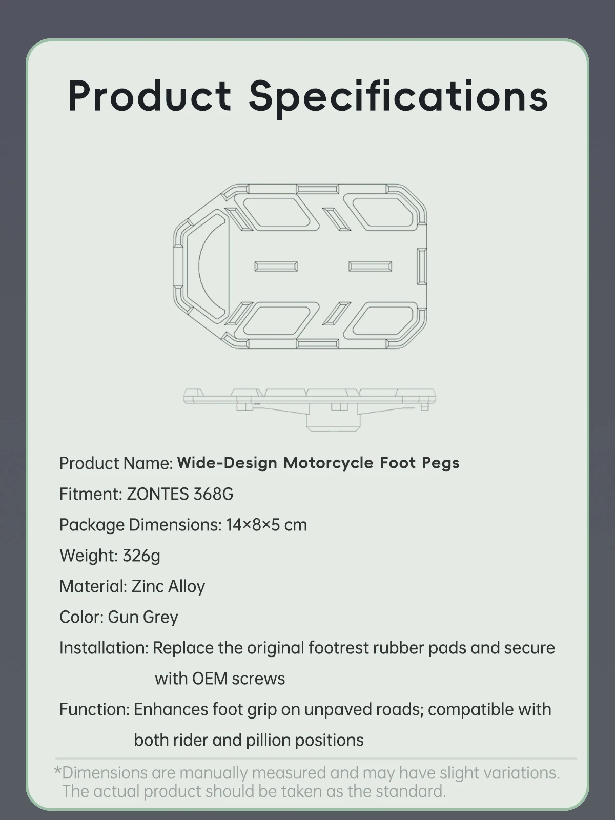 Pedane moto antiscivolo allargate Pedane Pedali Poggiapiedi per ZONTES 368G G368 Sedile anteriore posteriore in lega di zinco Multi-denti Dedal