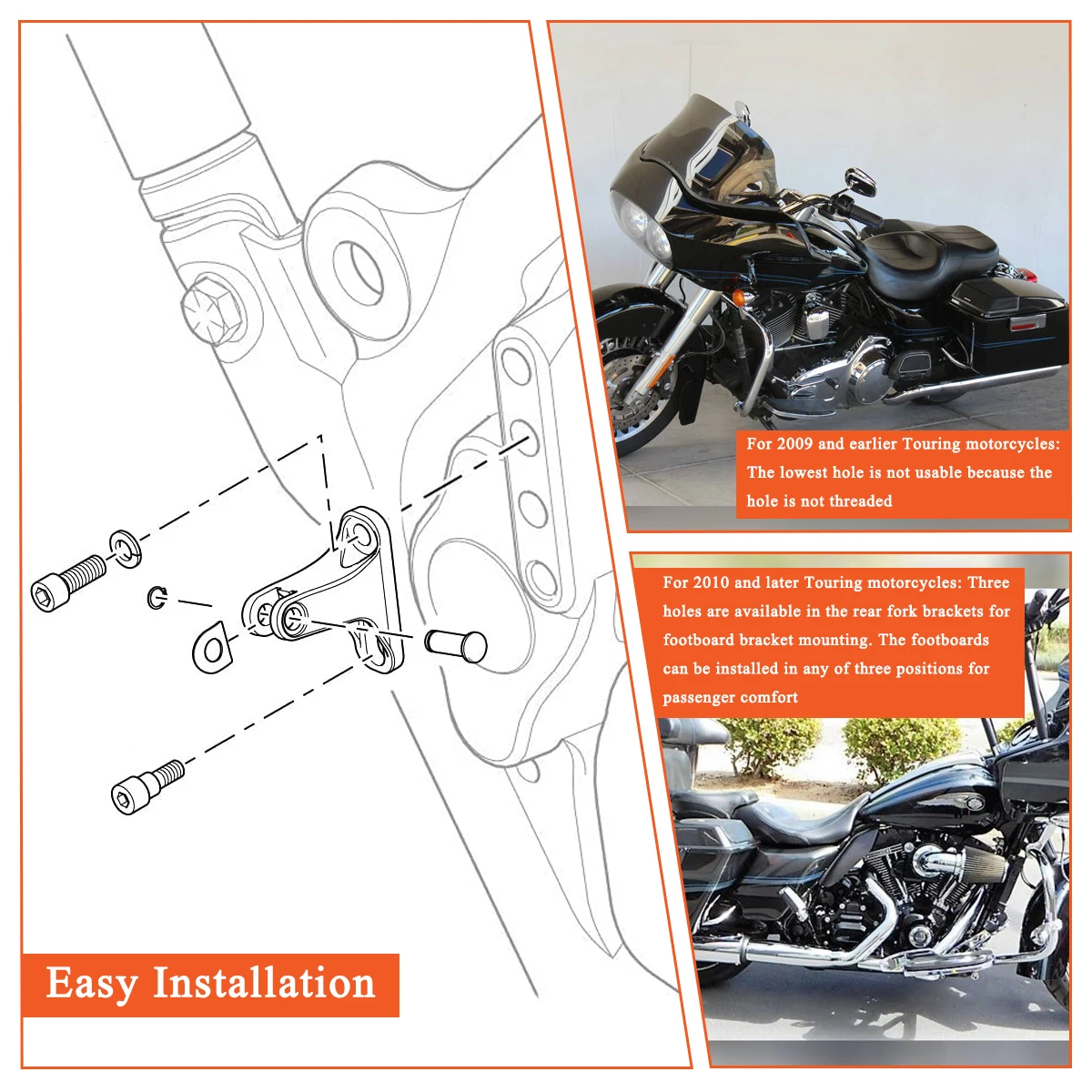 Descrizione:Pedane passeggero posteriore Pedane per moto Pedale di montaggio per Harley Touring CVO Street Electra Glide FLHX Road King FLHR 1993-2024 Caratteristiche:- Cambia la posizione del piede per un maggiore comfort sui lunghi tratti di strada aperta.- Il picchetto autostradale regolabile a 360 gradi può essere ruotato e bloccato in un’ampia gamma.- La morbida gomma smorza le vibrazioni per migliorare il comfort di guida.- Design comodi ed eleganti.Installazione semplice.- Metallo e gomma di alta qualità, molto resistenti.- Il trattamento superficiale liscio può ridurre l’attrito con le scarpe e prevenire graffiarsi le scarpe.- La lega di zinco è più dura e pesante, il che previene deformazioni e danni e la rende più durevole.Nome del prodotto:Set poggiapiedi passeggero posterioreCondizione:100% nuovo di zeccaDimensioni e stile:Come mostrato nella figuraColore:NeroMateriale:Lega di zinco di alta qualità e gomma antiscivoloPosizionamento sul veicolo:Posteriore, sinistro e destroQuantità:Una coppiaIl pacchetto include:Set pedane o kit di montaggio (come mostrato nell’immagine)Facile da installare, si consiglia inoltre di installarlo da un professionista, il kit è un ottimo articolo di aggiornamento per un piccolo investimento, può migliorare il comfort di guida e avere un’esperienza di viaggio migliore. Montaggio:Adatto per modelli Harley Touring 1993-2024.Non adatto ai modelli Trike.Per CVO Electra Glide FLHTCSE 2004Per CVO Electra Glide FLHTCSE2 2005Per CVO Limitato FLHTKSE 2014-2020Per CVO Road Glide – EFI FLTRSEI 2000Per CVO Road Glide 2 FLTRSEI2 2001Per CVO Road Glide personalizzato FLTRXSE 2012Per CVO Road Glide personalizzato FLTRXSE2 2013Per CVO Road Glide FLTRSE3 2009Per CVO Road Glide FLTRXSE 2018-2024Per CVO Road Glide limitato FLTRKSE 2022Per CVO Road Glide Limited FLTRKSEANV 2023Per CVO Road Glide ST FLTRXSTSE 2024Per CVO Road Glide Ultra FLTRUSE 2011,2015-2016Per CVO Road King 2 FLHRSEI2 2003Per CVO Road King FLHRSE3 2007Per CVO Road King FLHRSE4 2008Per CVO Road King FLHRSE5 2013Per CVO Road King FLHRSE6 2014Per CVO Road King FLHRSEI 2002Per CVO Street Glide FLHXSE 2010-2024Per CVO Street Glide FLHXSE2 2011Per CVO Street Glide FLHXSE3 2012Per CVO Ultra Classic Electra Glide FLHTCUSE 2006Per CVO Ultra Classic Electra Glide FLHTCUSE2 2007Per CVO Ultra Classic Electra Glide FLHTCUSE3 2008Per CVO Ultra Classic Electra Glide FLHTCUSE4 2009Per CVO Ultra Classic Electra Glide FLHTCUSE6 2011Per CVO Ultra Classic Electra Glide FLHTCUSE7 2012Per CVO Ultra Classic Electra Glide FLHTCUSE8 2013Per CVO Ultra classico FLHTCUSE5 2010Per CVO Ultra limitato FLHTKSE 2021Per Electra Glide Highway King FLHFB 2023Per Electra Glide Road King FLHR 1994Per Electra Glide Sport FLHS 1993Per Electra Glide Standard – EFI FLHTI 2003-2006Per Electra Glide Standard FLHT 1995-2022Per Electra Glide Ultra Classico FLHTCU 2015-2019Per Electra Glide Ultra Classic Low FLHTCUL 2015-2016Per Electra Glide Ultra Limited FLHTK 2010-2013Per la rivistica FLH 2021Per Road Glide – EFI FLTRI 1998-2006Per Road Glide personalizzato FLTRX 2010-2013Per Road Glide FLTR 1998-2009Per Road Glide FLTRX 2015-2024Per Road Glide Limited FLTRK 2020- 2024Per Road Glide Speciale FLTRXS 2015-2023Per Road Glide ST FLTRXST 2022-2023Per Road Glide Ultra FLTRU 2011-2019Per Road King – EFI FLHRI 1996-1997, 2000-2006Per Road King Classic – EFI FLHRCI 1998- 2006Per Road King classico FLHRC 2007- 2013Per Road King personalizzato-EF FLHRSI 2004-2006Per Road King FLHRS personalizzato 2004-2007Per il Re della strada FLHR 1995-2022Per Road King speciale FLHRXS 2017-2024Per Street Glide – EFI FLHXI 2006Per Street Glide FLHX 2006-2024Per Street Glide Speciale FLHXS 2014-2023Per Street Glide ST FLHXST 2022-2023Per FLHTK ultra limitato 2014-2024Per FLHTKL ultra limitato basso 2015-2019 Cari amici, per darvi una migliore esperienza di acquisto, prestate attenzione ai seguenti punti prima di effettuare un ordine:-Controlla attentamente le dimensioni del prodotto per assicurarti che il modello della tua moto sia adatto all’installazione.-Effettua un ordine in base alle opzioni immagine del prodotto corrispondente.Se avete domande, non esitate a contattarci, grazie mille!