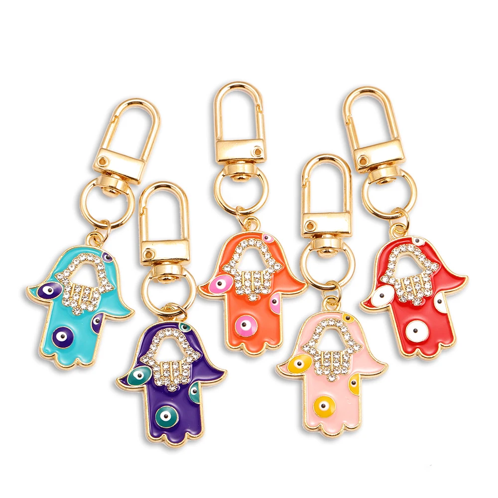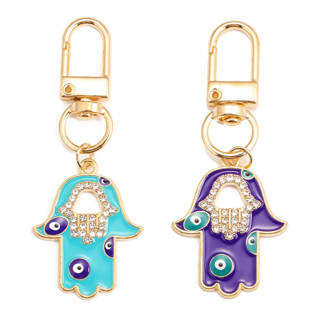 Peixin 2 pezzi di lusso stile etnico fortunato blu malocchio portachiavi fascino Fatima Hasma mano portachiavi portachiavi portachiavi per le donne