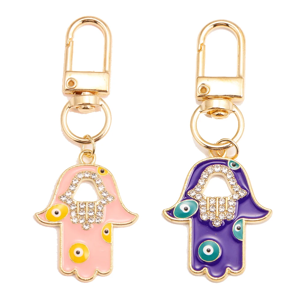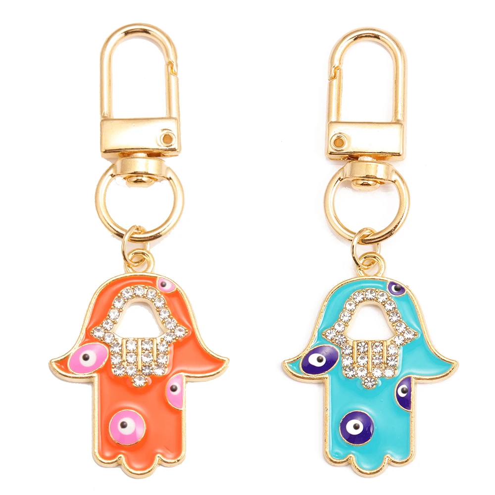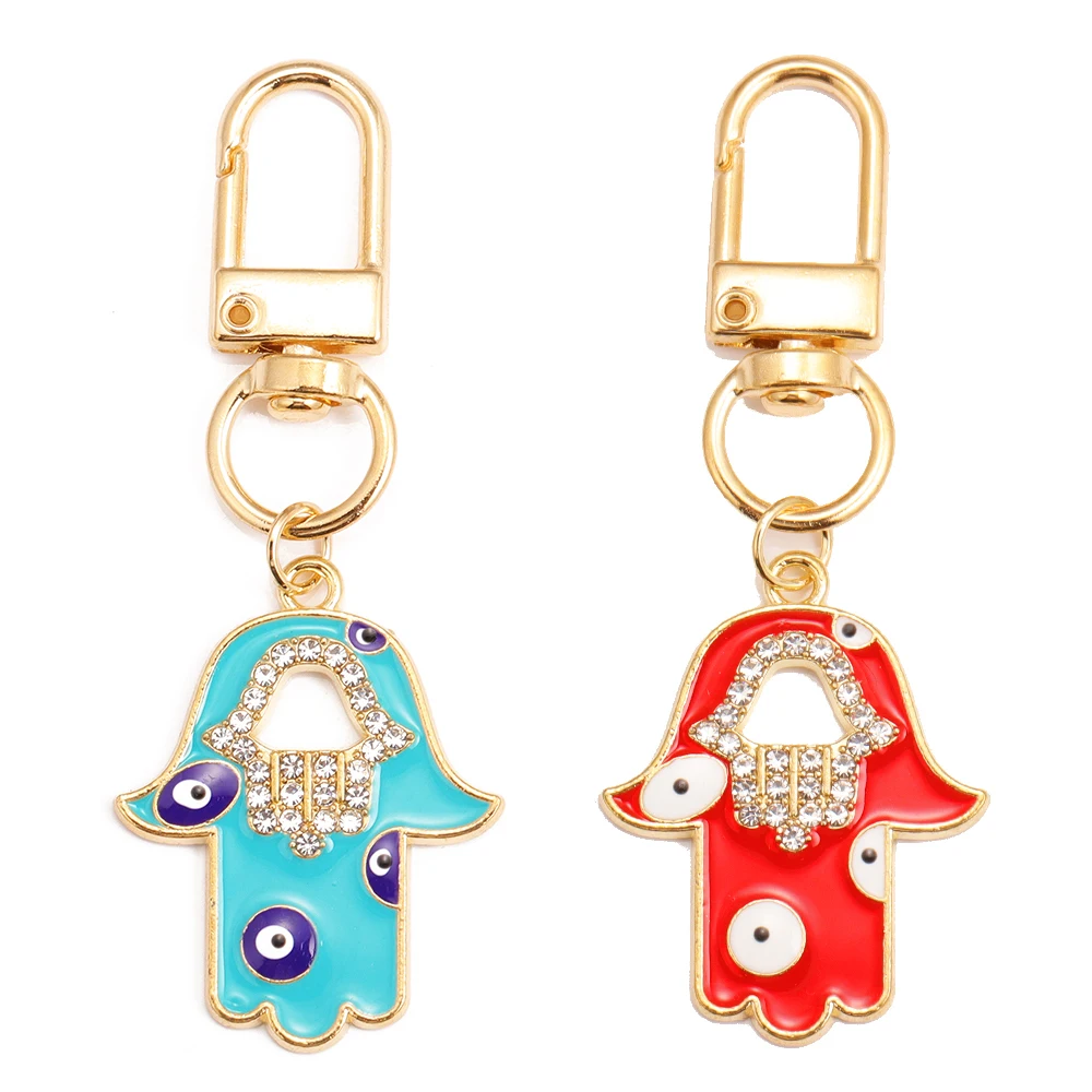 Peixin 2 pezzi di lusso stile etnico fortunato blu malocchio portachiavi fascino Fatima Hasma mano portachiavi portachiavi portachiavi per le donne