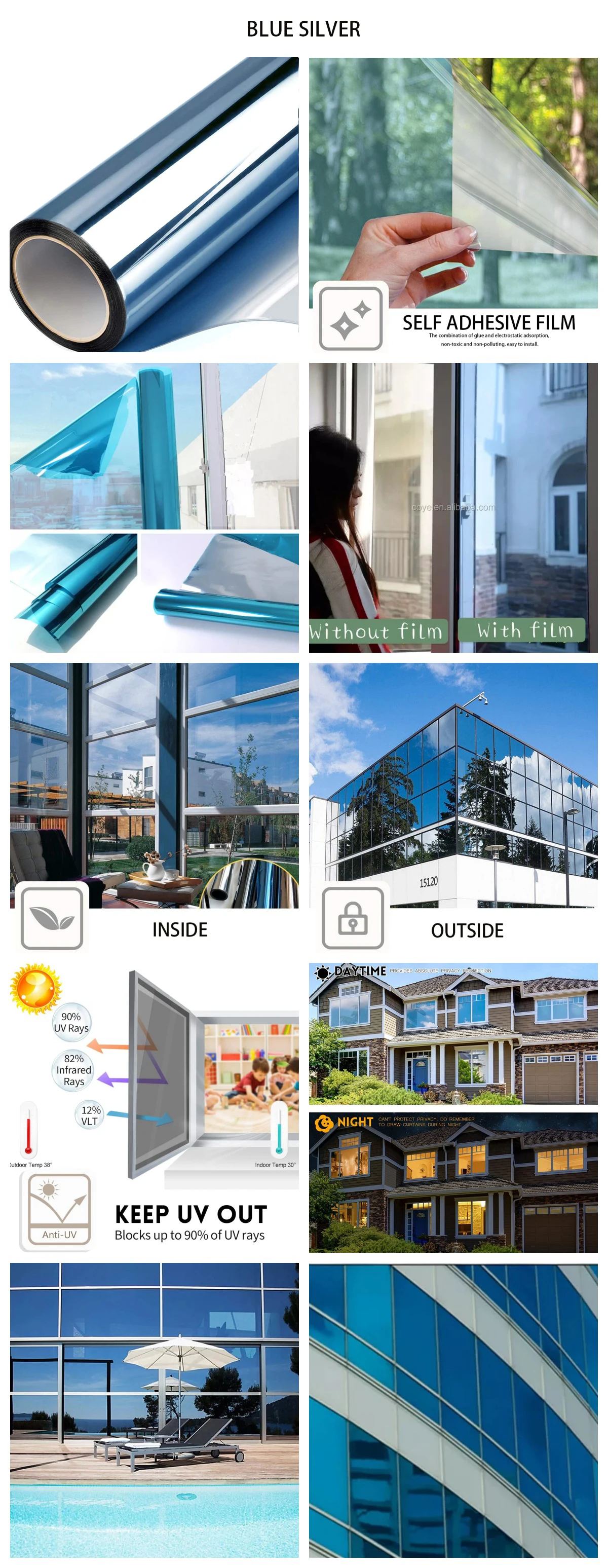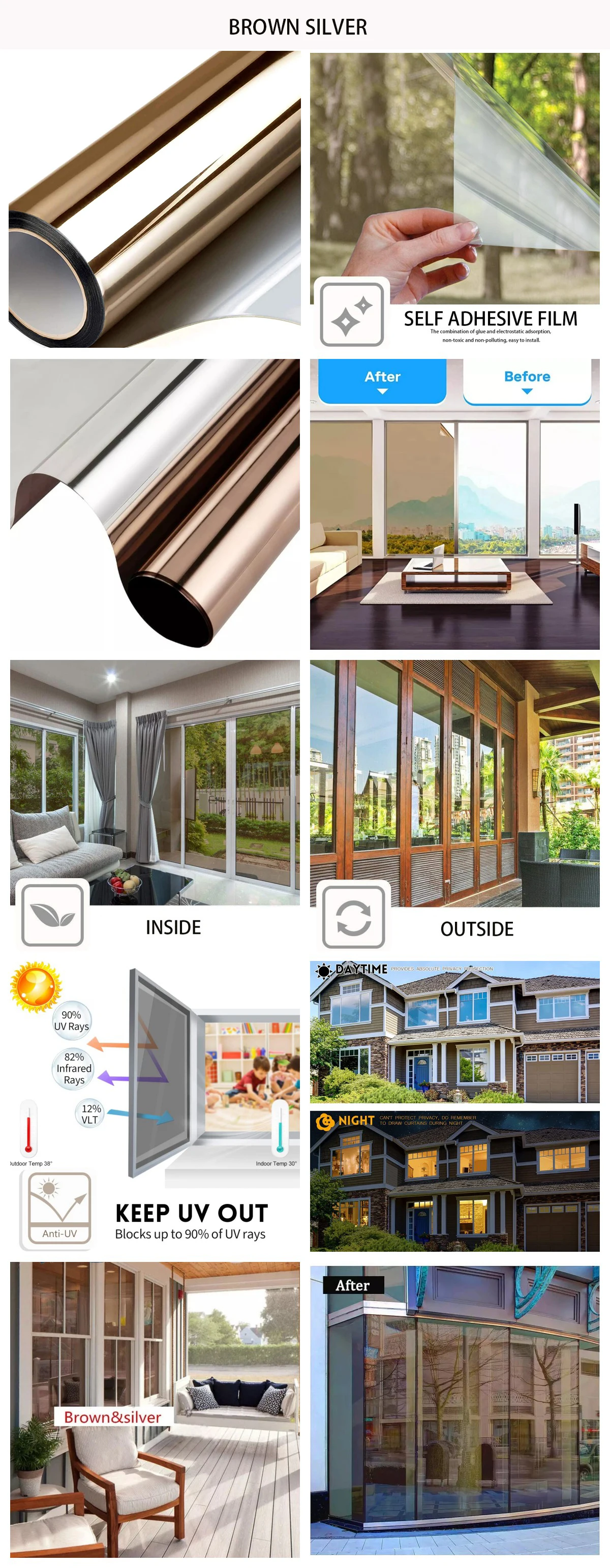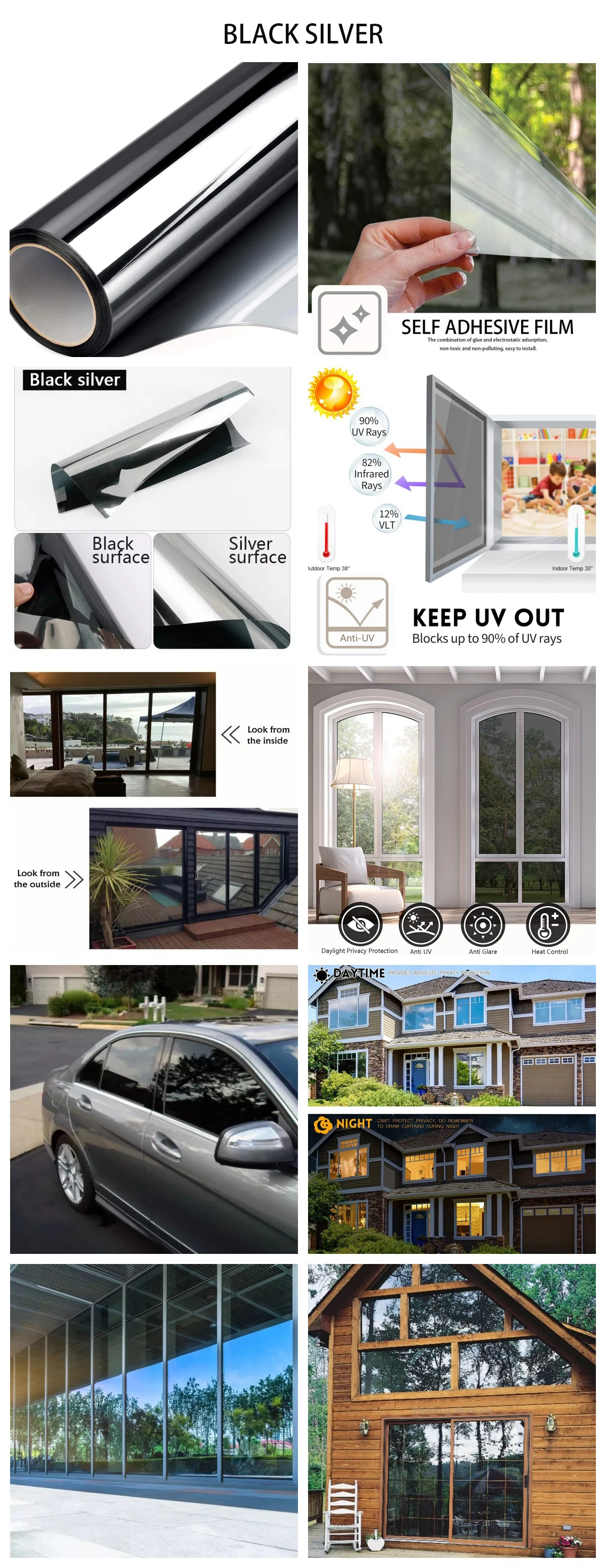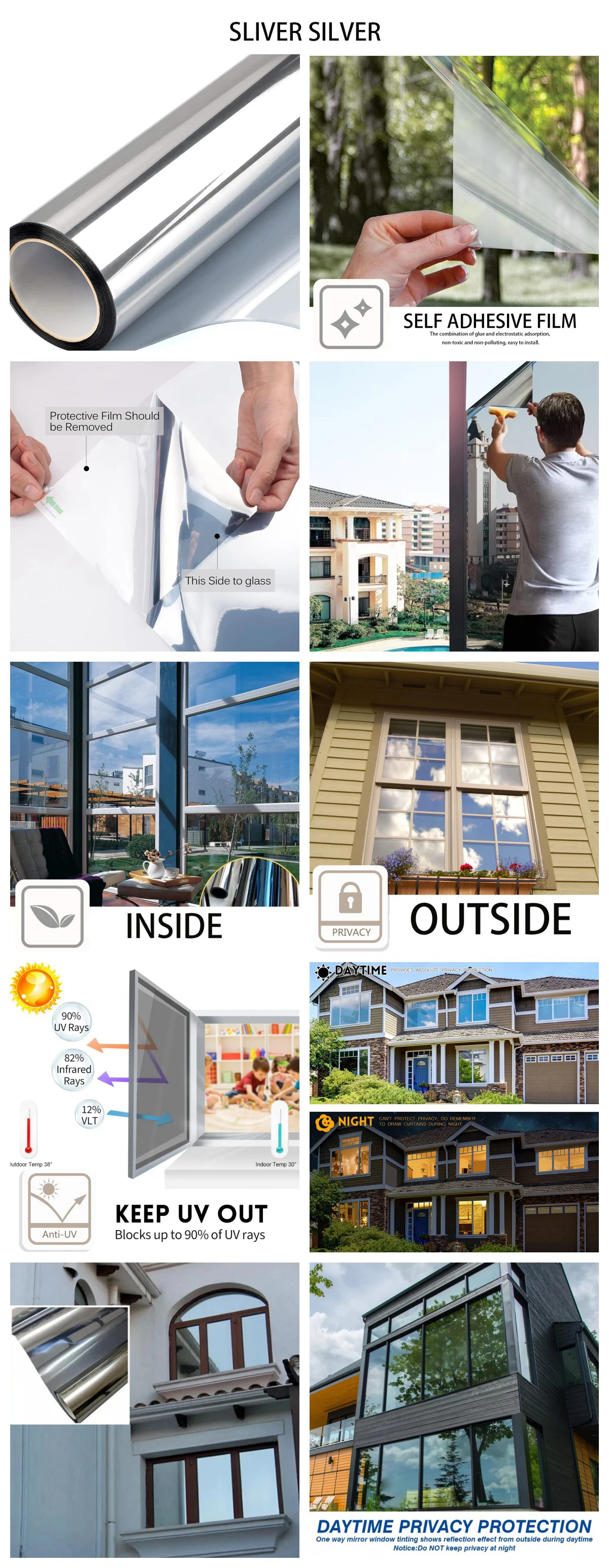 Pellicola per la privacy delle finestre da 3/5/8 m, pellicola a specchio unidirezionale anti UV con blocco solare, adesivo riflettente per tinta di vetro riflettente per il controllo del calore per l’home office