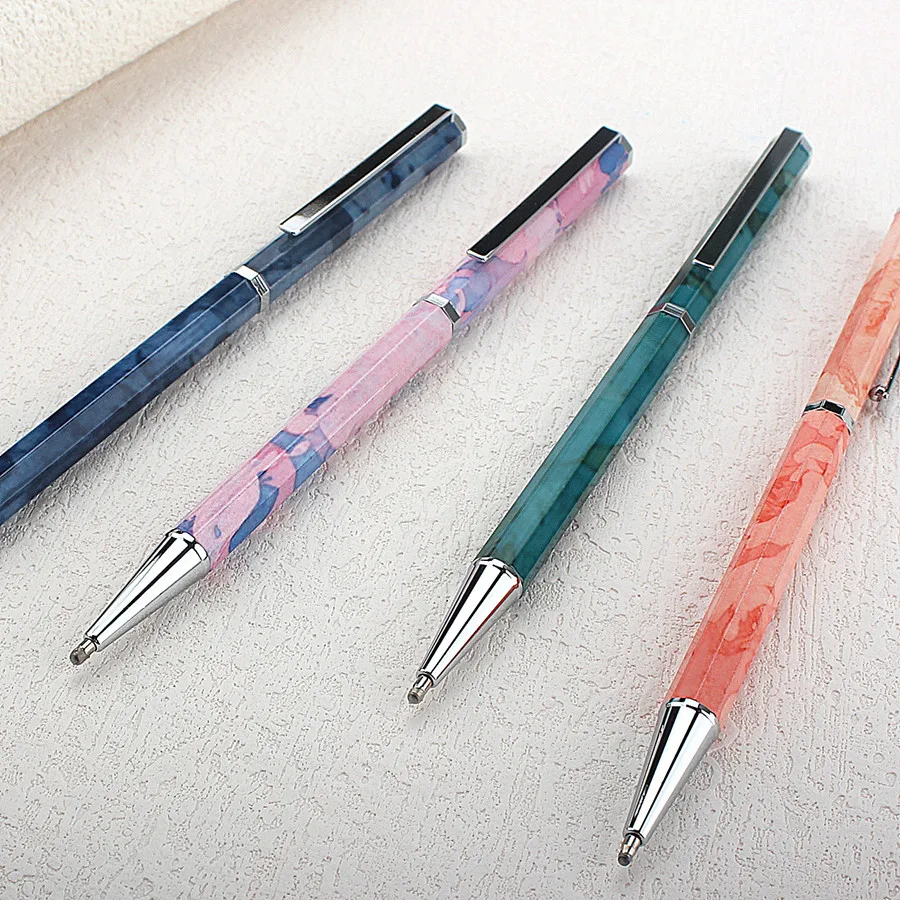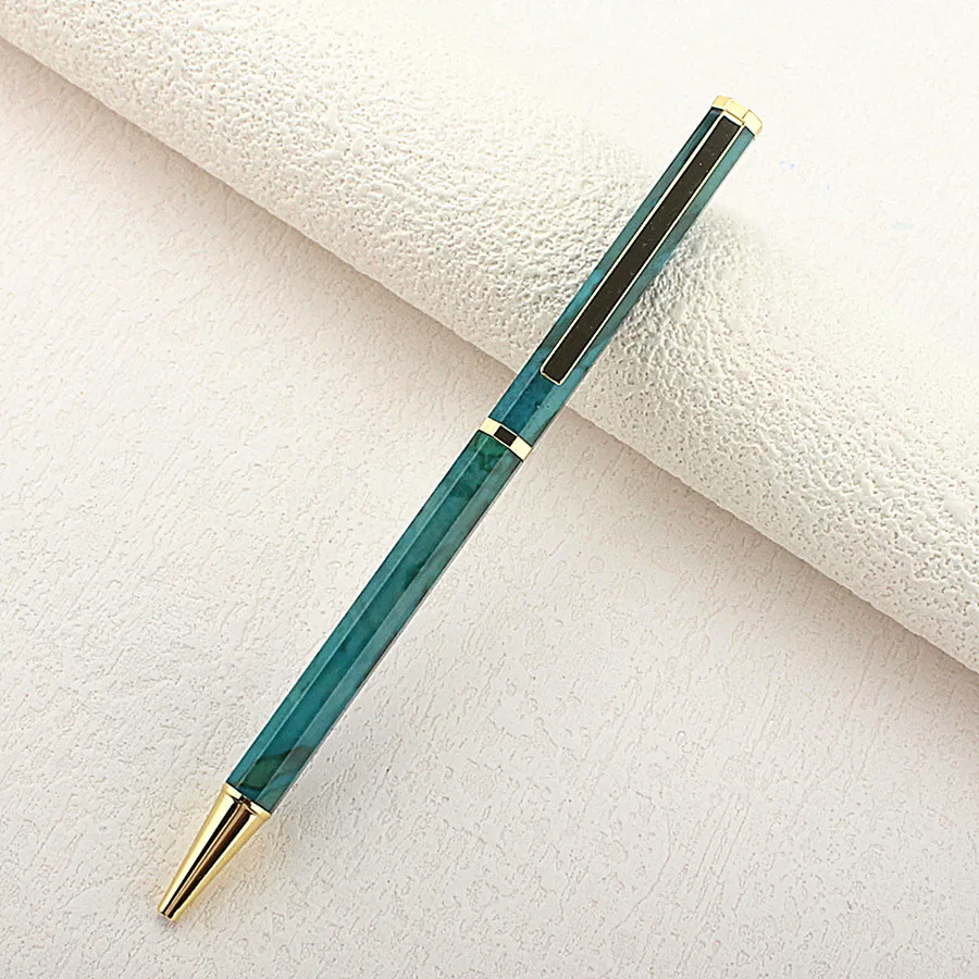Penna a sfera in metallo di forma ottagonale premium inchiostro blu ufficio affari scrittura penna a sfera regali di cancelleria per studenti scolastici