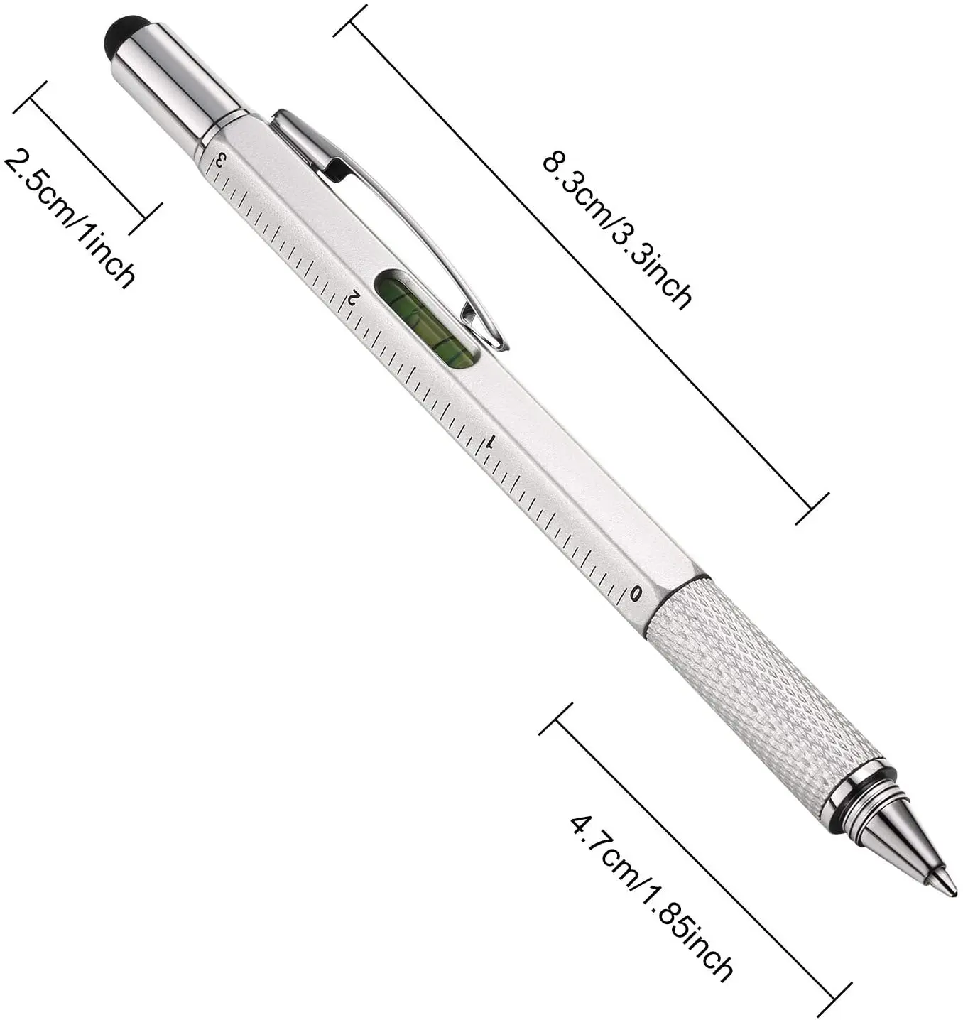 1 recensione per Penna a sfera multipla 7 in 1 con strumento portatile moderno Misura righello tecnico Cacciavite Touch Screen Stilo Strumenti a livella a bolla