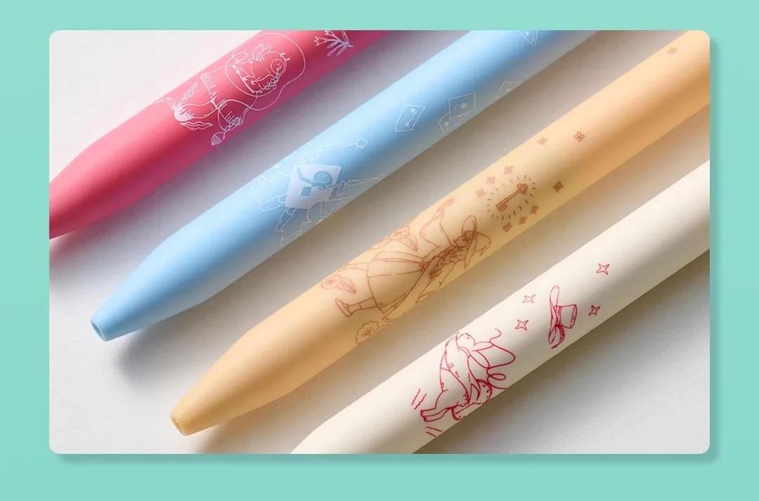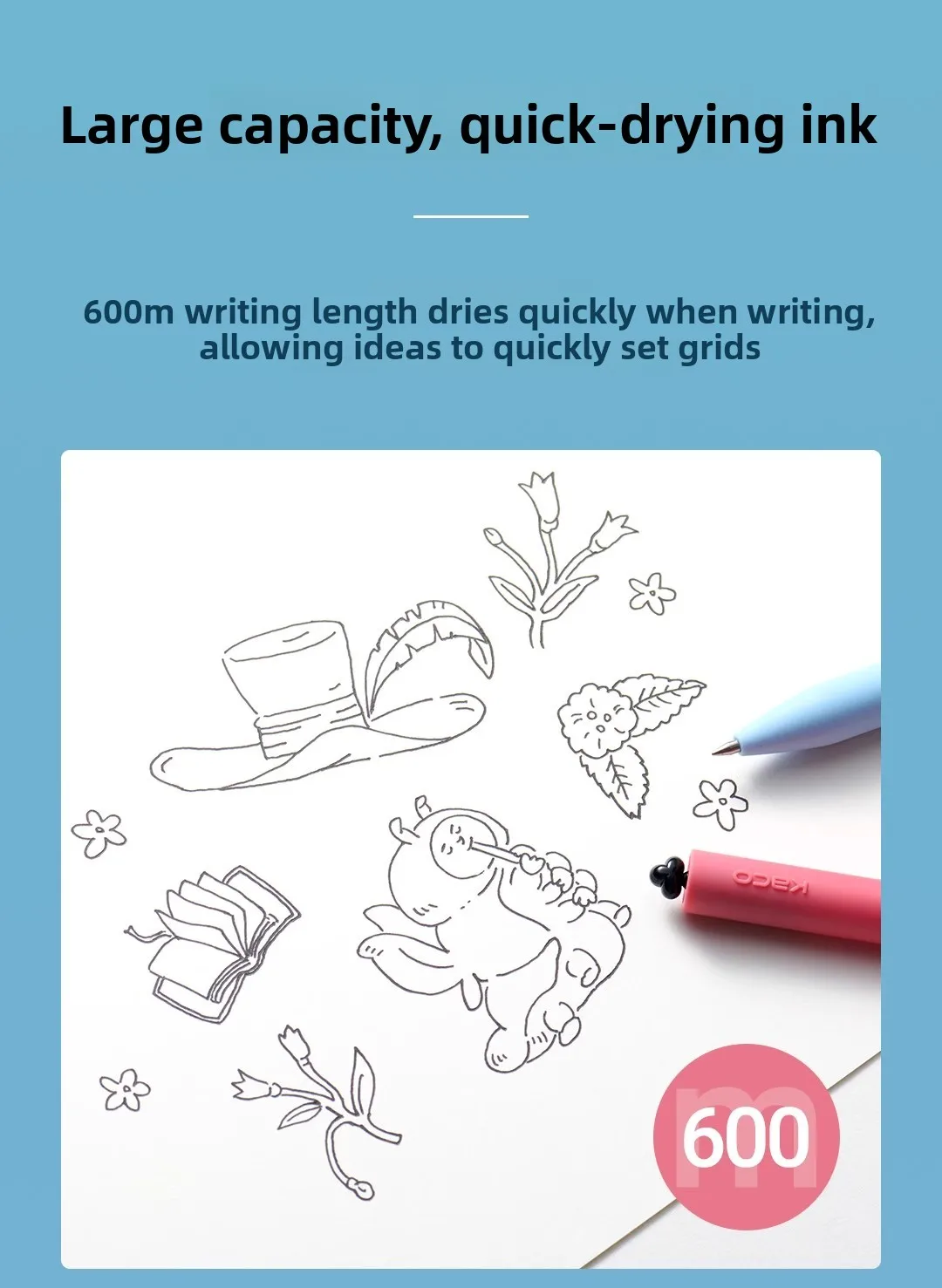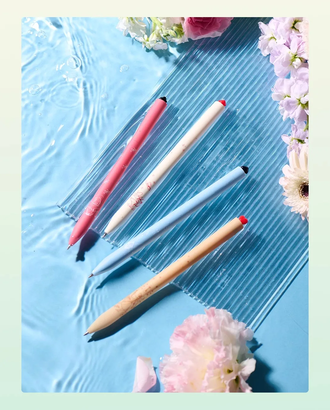Penna gel serie KACO “Chuxin Qijing Garden”, confezione da 4 | Elegante penna gel nera retrattile (0,5 mm) | Cancelleria per studenti e uffici