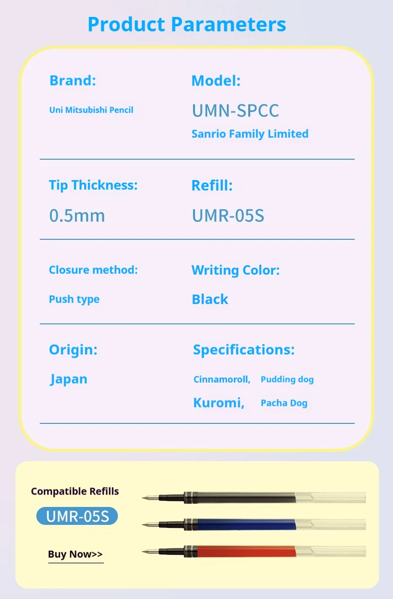 Penna gel Uni Ball One Sanrio Edition, mini penna tascabile grassa, carina inchiostro nero ad asciugatura rapida ricaricabile ​ Cancelleria estetica per viaggi