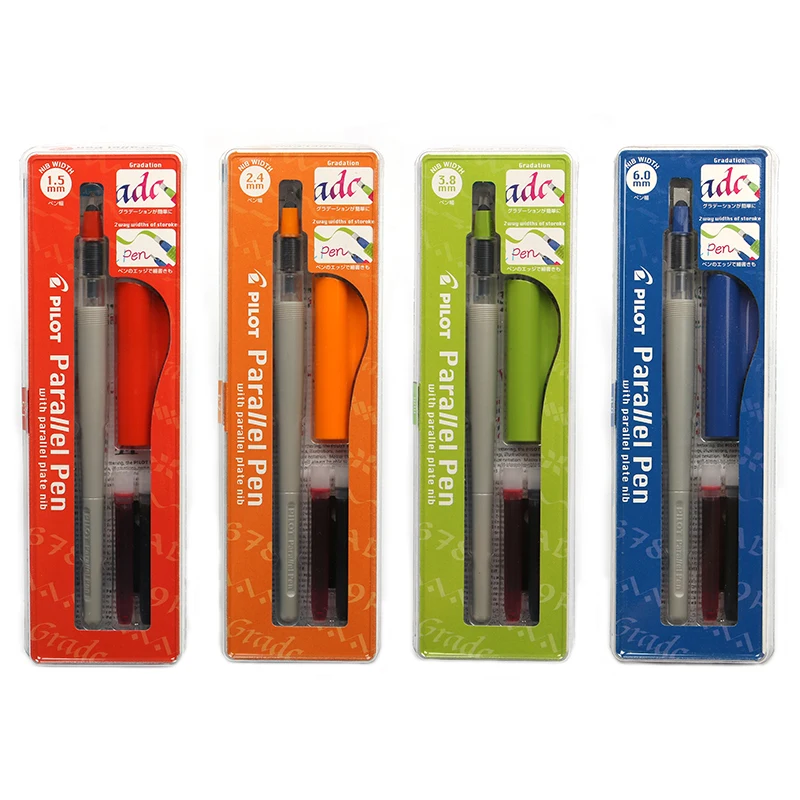 La penna parallela ha due pezzi metallici paralleli nella punta, che consentono una scrittura fluida e un’ampia gamma di larghezze (0,5~3,6 mm) e una larghezza della linea di 0,5 mm per la scrittura verticale. La costruzione unica rende facile disegnare una linea sottile ha una penna a immersione che non può essere paragonata alla comodità, ma può anche scrivere un colore sfumato, che è la caratteristica della penna parallela Baile, questa penna può scrivere in stile gotico, italiano e altri inglesi, non è raccomandato per l’uso quotidiano della scrittura.