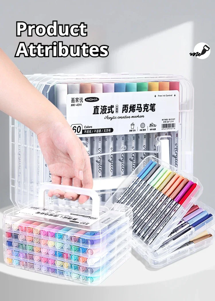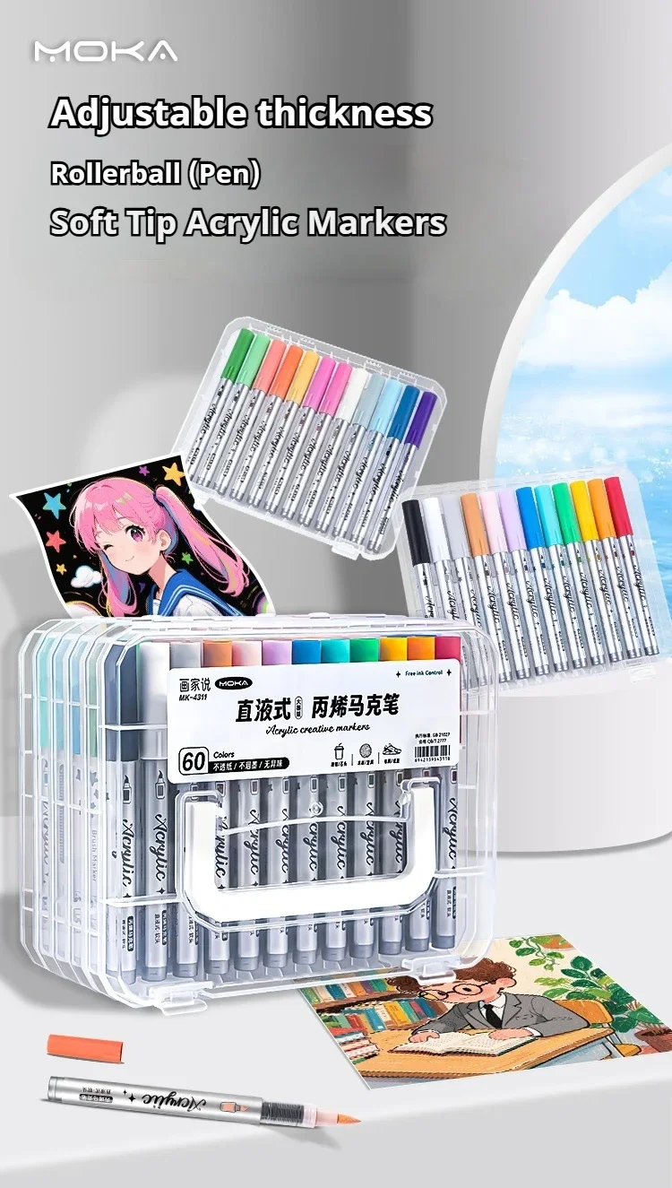 48/60/80/120 colori Pennelli a doppia punta Pennello e scalpello Pennarelli artistici permanenti con base e pennarelli per contorni Kit di forniture per disegno-Ricaricabili