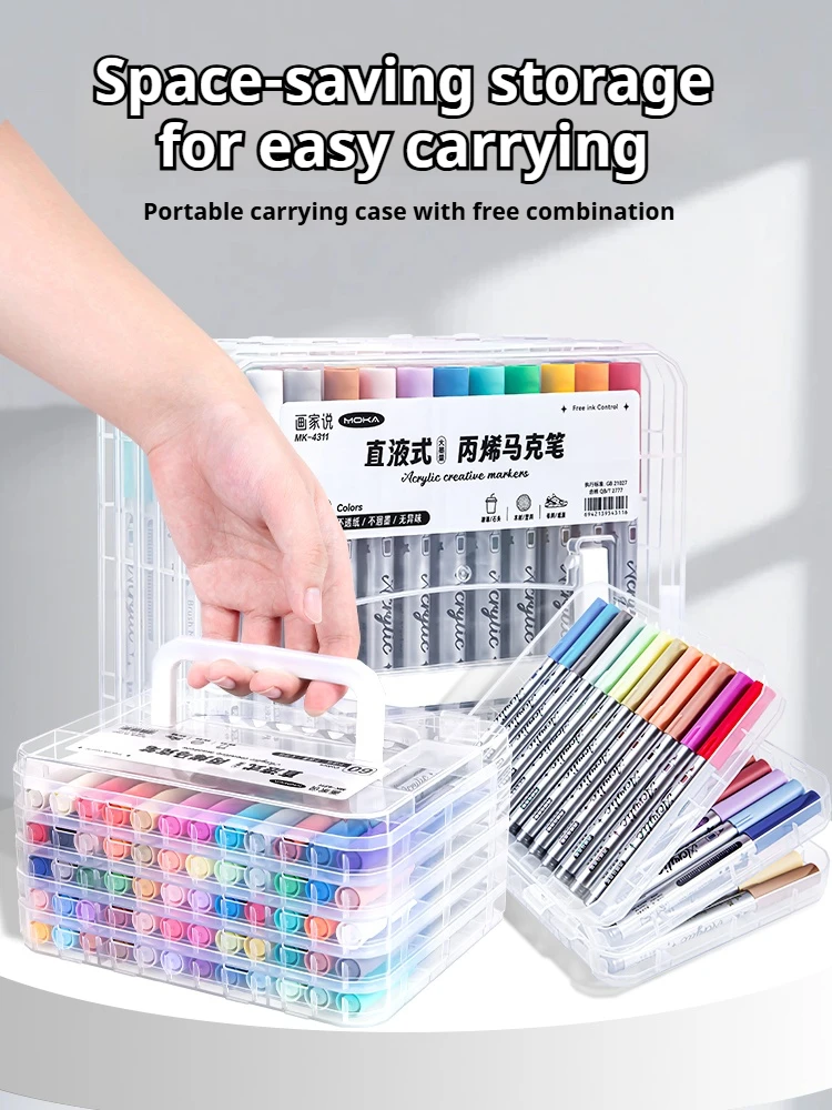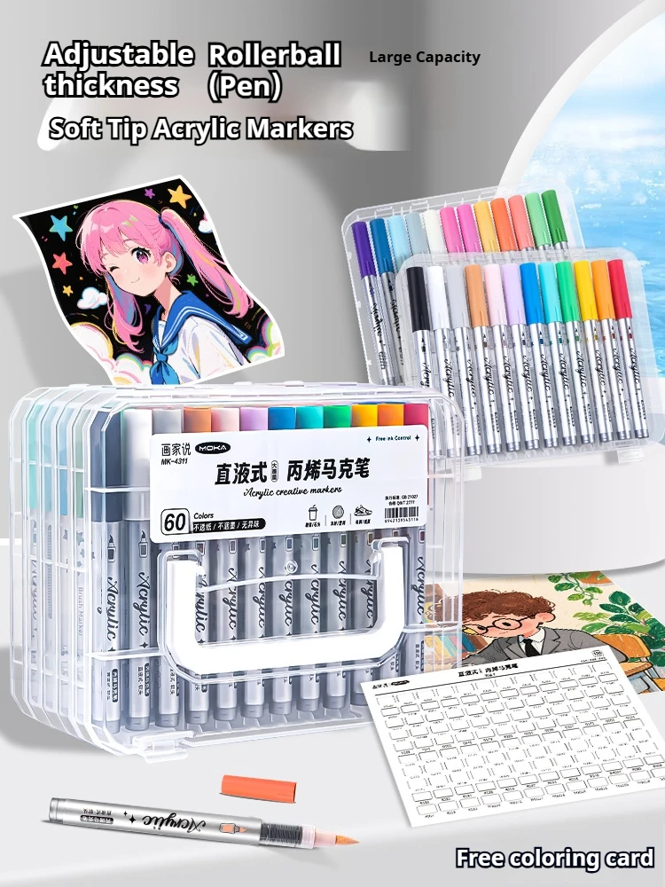 48/60/80/120 colori Pennelli a doppia punta Pennello e scalpello Pennarelli artistici permanenti con base e pennarelli per contorni Kit di forniture per disegno-Ricaricabili