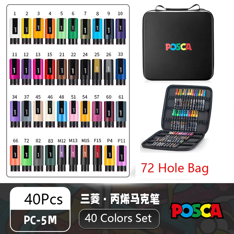 Pennarelli Uni Posca 24/36 colori, penna per pittura acrilica con custodia Posca Forniture artistiche di cancelleria giapponese per dipingere graffiti
