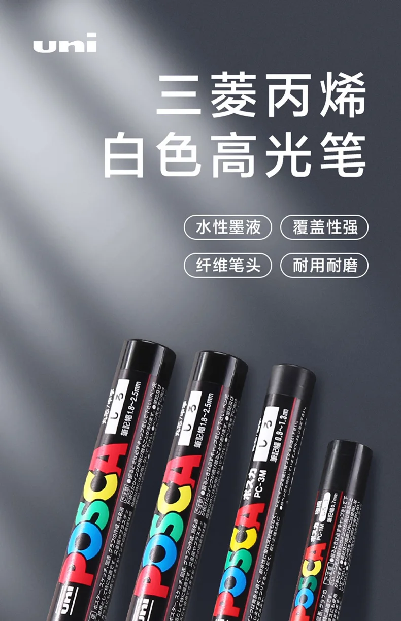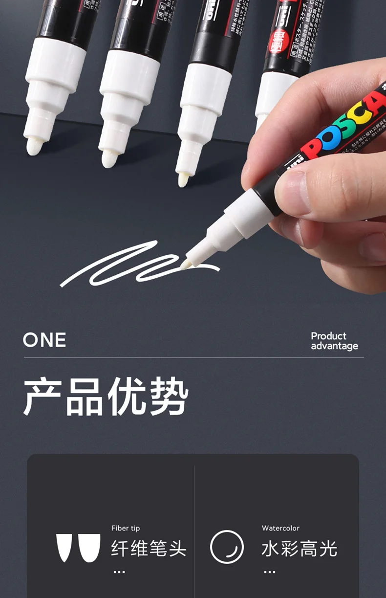 Pennarello bianco Posca, pennarelli permanenti impermeabili che non sbiadiscono ad alta lucentezza, arte rock/vernice per tessuti/graffette per scarpe/produzione di poster